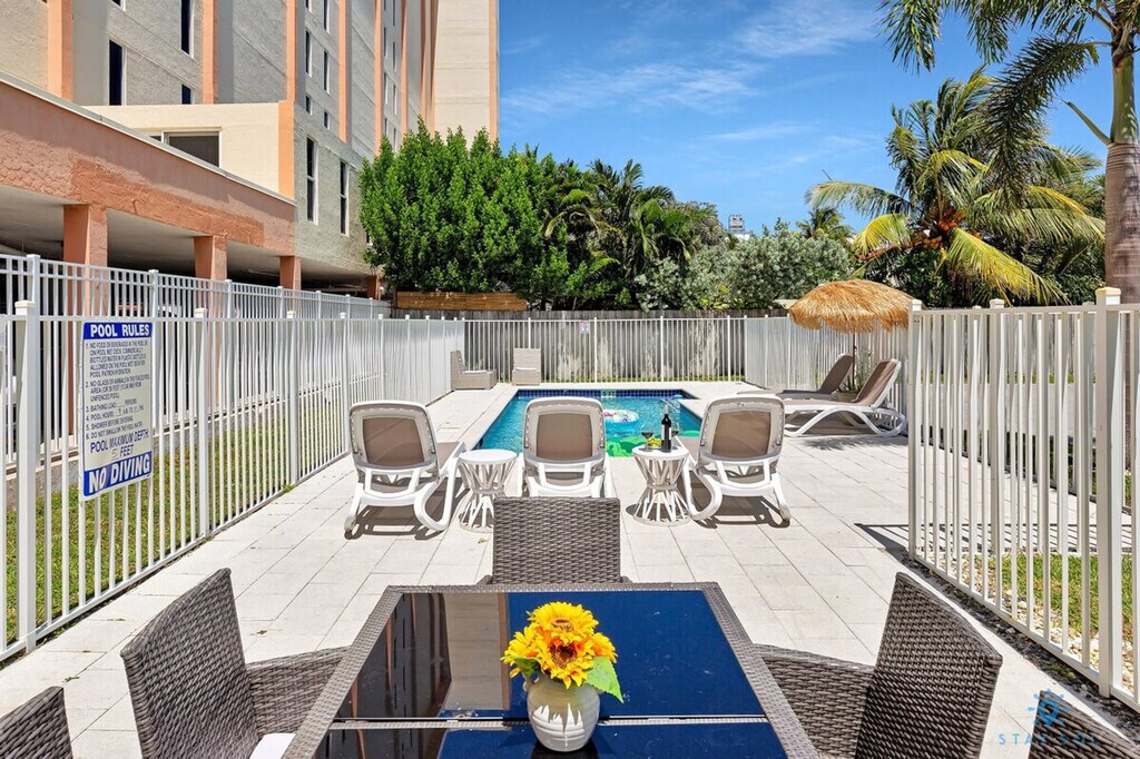 Steps from the legendary Hollywood Boardwalk, this newly renovated apartment offers stunning views of a beautiful beach surrounded by bars, live music events, and wonderful restaurants. Located just a block away from the ocean, this apartment features a pool and free parking with one designated self-parking space. The master room boasts two queen-size beds with a bay view, while the second bedroom offers two single beds. The living room includes a sofa bed and bay view, accommodating up to six guests. This modern apartment provides all the comfort you need to feel at home, making it a perfect staycation for family and friends. The fully equipped kitchen includes a stainless steel refrigerator, microwave, cookware and utensils, coffee maker, and toaster. The two spacious bedrooms come with a hairdryer and an iron/ironing board. A bathroom with a starting amount of toiletries, towels, and a hairdryer is also available. Additionally, a washer and dryer are inside the unit. Free pack and play available upon request. Located along North Ocean Drive in the lively community of Hollywood Beach, this apartment places travelers at the heart of the action. Within walking distance of the famous Hollywood Beach Broadwalk and the beach, guests can enjoy exciting activities such as jet skiing, fishing, sailing, biking, and golf. Hollywood Beach, Florida, is ideal for sea and sun lovers, offering a 2.5-mile Broadwalk perfect for an informal stroll or bike ride. South Beach and Miami are a short drive away, and the area is filled with unique bars and restaurants like The Le Tub Saloon, GG's Waterfront Grill, El Tayta, and Taverna Opa. Fort Lauderdale International Airport is 7.72 miles away, and Miami International Airport is 23.8 miles away, with options for Uber or car rental available. Check-in is available any time after 4 PM, and check-out is by 11 AM. Early check-in or late check-out may be available upon inquiry. Guests may experience increased noise on weekdays during the daytime due to ongoing nearby construction. Exterior security cameras are on the property. Swim at your own risk, and children must be supervised. Identity verification is required, and guests must choose between a damage waiver or a refundable security deposit. [SI]