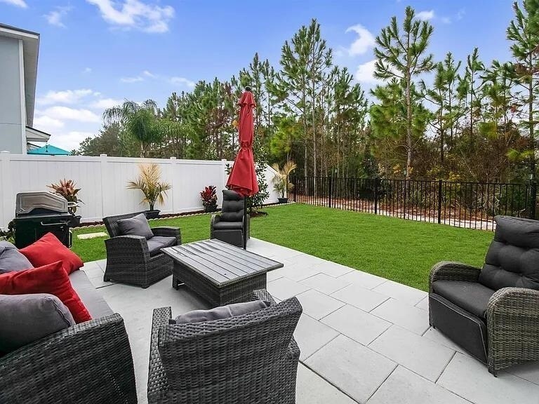 Welcome to 81 Ridge Lake Road, a beautifully upgraded 3-bedroom, 2.5-bath end-unit townhome featuring a one-car garage and a private, fully fenced backyard. This home offers an inviting open-concept layout with abundant natural light, modern finishes, and thoughtful design throughout. The kitchen has nice contemporary cabinetry, stainless steel appliances, and a large breakfast bar overlooking the spacious living and dining area perfect for entertaining or relaxing at home. Upstairs, the primary suite features a walk-in closet and a spacious bathroom, with two additional bedrooms and a guest bath, providing ample space for family or guests. Enjoy outdoor living on the back patio backing to a wooded area with fencing for privacy. Conveniently located near shopping, dining, and just minutes from historic downtown St. Augustine and the beaches. Rent includes lawn care, and the property is smoke-free. Some pets may be considered. The application fee is $100.00 per adult applicant.