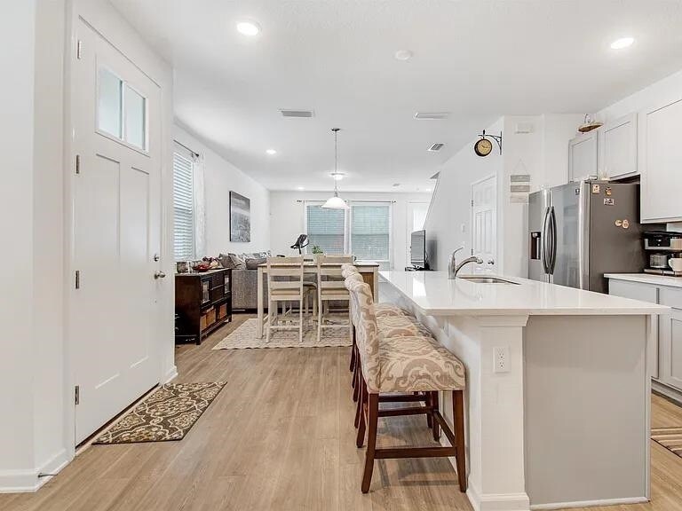 Welcome to 81 Ridge Lake Road, a beautifully upgraded 3-bedroom, 2.5-bath end-unit townhome featuring a one-car garage and a private, fully fenced backyard. This home offers an inviting open-concept layout with abundant natural light, modern finishes, and thoughtful design throughout. The kitchen has nice contemporary cabinetry, stainless steel appliances, and a large breakfast bar overlooking the spacious living and dining area perfect for entertaining or relaxing at home. Upstairs, the primary suite features a walk-in closet and a spacious bathroom, with two additional bedrooms and a guest bath, providing ample space for family or guests. Enjoy outdoor living on the back patio backing to a wooded area with fencing for privacy. Conveniently located near shopping, dining, and just minutes from historic downtown St. Augustine and the beaches. Rent includes lawn care, and the property is smoke-free. Some pets may be considered. The application fee is $100.00 per adult applicant.