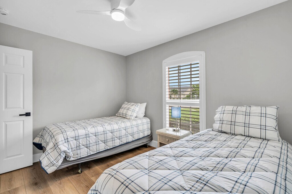 Welcome to your pet-friendly vacation rental home located in the peaceful neighborhood of Willoughby Acres in north Naples, Florida. This single-family home offers accommodations to sleep six people and features multiple dining spaces, including indoor seating at the kitchen counter, a dining room set for eight, and two outdoor tables on the lanai. Conveniently located just four miles from the beach, you'll feel at home in this charming retreat. Your accommodations include a king bed in the main bedroom with a gorgeous en-suite bathroom, a queen bed in bedroom two, and two twin beds in bedroom three. Enjoy indoor dining for eight at the dining table and four at the kitchen table, as well as outdoor dining for ten at the two tables outside on the screened and covered lanai. The washer and dryer are located in the garage, along with beach chairs for use during your stay. Make sure to check out the floor plan in the picture carousel to see how the home is laid out. This pet-friendly home permits only one or two non-shedding, hypoallergenic dogs. Cats and all other animals, including birds, reptiles, rodents, and exotic pets, are strictly prohibited. Located right in the heart of north Naples near Immokalee Road and Airport Road, the home is a little over four miles away from the Vanderbilt Beach north access and Delnor-Wiggins Pass State Park beach. With four bikes included, you can bike or walk to the Pipers Crossing Plaza, which features a variety of dining options. Willoughby Acres is very pedestrian-friendly, and just a block down from the home is a small playground with a walking path, benches, and a sidewalk connecting to the neighboring community of Palm River, which also has miles of roads to explore. This is a self-check-in property. You will receive the codes to check in once full payment is received and it is two weeks prior to arrival. Codes are changed automatically between each reservation. Quiet hours are from 22:00 to 8:00. It is best to have a vehicle with you as Naples is a large metro area. This property is about a 30-minute drive to the Fort Myers International Airport. Registration Number: Florida state permit number: #DWE2102775 [SI]