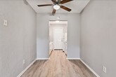 Nestled in a non-through street neighborhood, courtyard style property invites you to quaint, private living. 2 bedrooms with walk in closets and one bath. 2 entrances, one to the courtyard, one to a small outdoor living space, allow you to create welcoming outdoor lounging options. Open concept kitchen, living, and dining space. Cool, modern paint and tile selections brighten the mood! Kitchen Includes refrigerator and stove. Property backs up to a large, green unrestricted yard and plenty of parking with paved lot. BONUS shared on site laundry room with commercial washer and dryer for maximum convenience! Take morning strolls at at Lively park; walking paths and greenbelts just a block away! Located next to major road access like MacAurthur, 183, easy commute to all areas of the Metroplex. Right around the corner from Lorenzo DE Zavala Middle School. Welcome Home!!!!