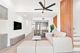 Feel at home in this modern coastal escape in the Ocean Breeze Community, a beautifully designed 1-bedroom + loft, 2-bath second-floor apartment just steps from the beach. This retreat comfortably sleeps 6, featuring a luxurious king-size bed in the primary bedroom, a queen-size bed in the upstairs loft with its own private full bathroom, and a sleeper sofa in the living area. The open-concept living space is bright and inviting, with a sleek, fully equipped kitchen boasting quartz countertops and stainless steel appliances. The main floor includes a full spa-inspired bathroom with a glass-enclosed shower, and the loft offers a private en-suite bath for added convenience. An in-unit washer and dryer add extra convenience. Thoughtfully designed with upscale coastal décor, this home is located just moments from pristine white sandy beaches, top dining, shopping, and entertainment. This stunning rental offers the perfect blend of comfort, style, and a prime beachside location. Quiet hours are observed between 10 PM and 8 AM. Surveillance cameras are in operation on the premises to ensure well-being and monitor common areas. Per PCB Ordinance 1632, the maximum occupancy is 6 guests, including children and infants. Failure to abide by the ordinance may result in fines and ejection. Includes a dedicated office space to easily balance work and play. [SI]