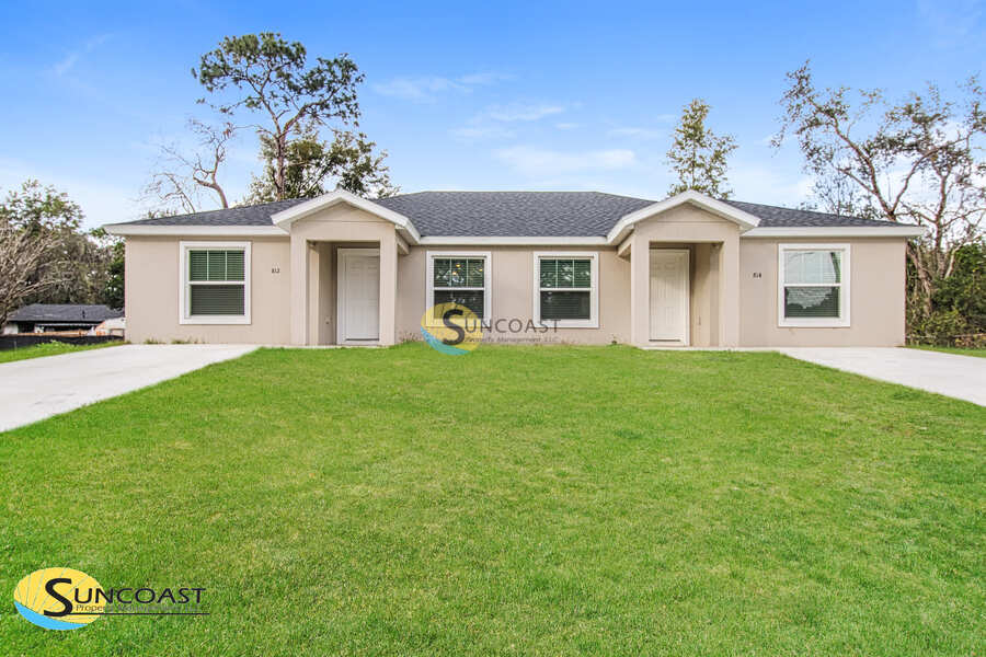 Brand-New 2BR/2BA Duplex in Inverness Be one of the first few tenants to live in this brand-new construction duplex, thoughtfully designed for modern living in Inverness, FL 34452. Built in 2025, this stunning 2-bedroom, 2-bathroom home offers 1,052 square feet of bright, open-concept living space with high-end finishes throughout. Step inside to discover luxury vinyl plank flooring, stylish white cabinetry, and a contemporary layout perfect for both relaxing and entertaining. The modern kitchen features granite countertops, brand-new appliances, and ample storage, making everyday living both functional and stylish. Each bedroom is generously sized with great natural light, and the primary suite includes a private bathroom for added comfort. This home includes washer and dryer hookups, online rent payment options, and lawn care is included, giving you a low-maintenance lifestyle from day one. It is pet-friendly and no monthly pet rent, making it an excellent option for pet owners. Located in the heart of Inverness (34452), you'll enjoy convenient access to popular local spots and daily essentials. Grocery shopping is nearby at Publix, Winn-Dixie, and Save A Lot. Enjoy dining and nightlife at local favorites such as Cattle Dog Coffee Roasters, The Depot District, Stumpknockers on the Square, Angelos Pizzeria, and Mamas Kuntry Cookin. Outdoor enthusiasts will love being close to Whispering Pines Park, Liberty Park, and the Withlacoochee State Trail. Nearby schools and easy access to major roadways make commuting and daily errands simple. Apply online to secure this move-in-ready home before its gone! Suncoast's Choose How to Pay Program = More Flexibility. High upfront costs shouldn't hold you back from finding the right home. That's why we offer two simple options: 1. Pay the traditional full security deposit at move-in, or 2. Choose our Flexible Security Deposit Plan, which lets you spread out your payments while still keeping the same coverage. This program helps ease move-in costs without sacrificing peace of mind. Photos are for illustration purposes only and some details may differ! All SunCoast Property Management residents are enrolled in the Resident Benefits Package (RBP) for $75.00/month which includes liability insurance, credit building to help boost the residents credit score with timely rent payments, up to $1M Identity Theft Protection, HVAC air filter delivery (for applicable properties), move-in concierge service making utility connection and home service setup a breeze during your move-in, on-demand pest control, and much more! The RBP is an additional cost and is not included in the advertised monthly rental rate. More details upon application. BEWARE of potential fraud. If you suspect one of our properties being listed fraudulently, please email: Suncoast Property Management does NOT ask any of our potential residents to wire funds. Our main office is located in Jacksonville; Florida and you can visit our website to verify any rental listing. Lease Administrative Fee. Upon execution of this Lease, Tenant will pay Landlord a nonrefundable Lease Administrative Fee of $200.00. Pay Online Pets Allowed Washer/Dryer Connections