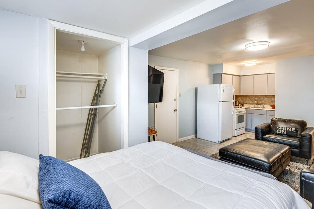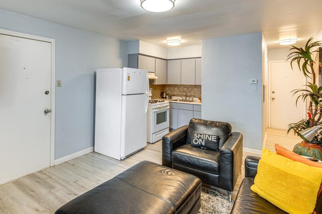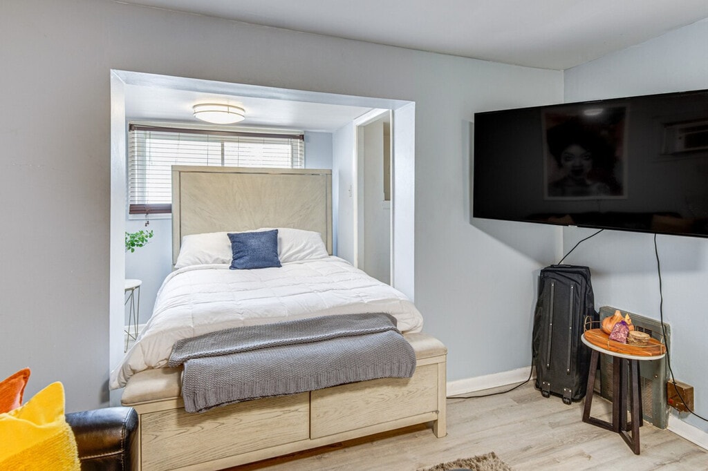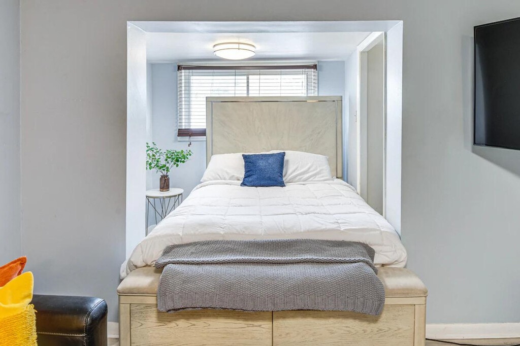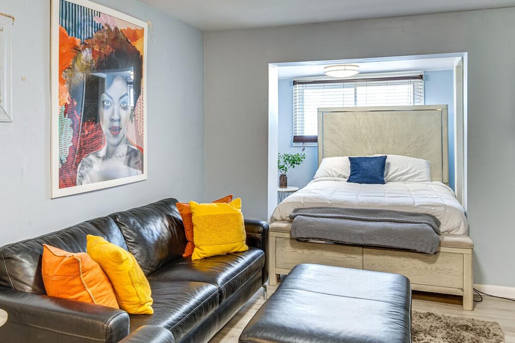 Nestled in Chicago’s Ashburn neighborhood, this single-story studio apartment on the 1st floor offers step-free entry and is perfect for a comfortable extended stay, whether you're visiting for work or play. With easy access to local dining, parks, and public transportation, you can cheer on the Bulls at United Center, shop along the Magnificent Mile, or take in the views at Navy Pier. After a busy day, return to this 1-bathroom studio for a comforting meal and enjoy a movie of your choice on the smart TV. The studio features a queen bed and a cozy sofa, providing a relaxing space to unwind. The kitchenette is equipped with a refrigerator, stove/oven, Keurig coffee maker, electric kettle, and all the cooking basics, dishware, and flatware you need. Enjoy the convenience of free WiFi, a wall A/C unit, boiler heat, and provided linens and towels. Free street parking is available on a first-come, first-served basis. For those interested in additional accommodations, three other properties are available on-site with separate nightly rates. Inquire for more information if you wish to reserve multiple rentals. Located in the vibrant Ashburn neighborhood, this apartment offers easy access to local dining, parks, and public transportation. Explore the best of Chicago with nearby attractions like the United Center, Magnificent Mile, and Navy Pier, all within a short distance. Guests will have access to the entire property via lockbox. Quiet hours are observed from 8:00 PM to 8:00 AM. Smoking, pets, and events or large gatherings are not allowed. Guests must be at least 21 years old to book, and additional fees and taxes may apply. A photo ID may be required upon check-in. Other travelers may be present during your stay as there are other bookable vacation rentals on-site. For information about using the community gym and available fitness classes, please reach out to the Guest Contact. [SI]