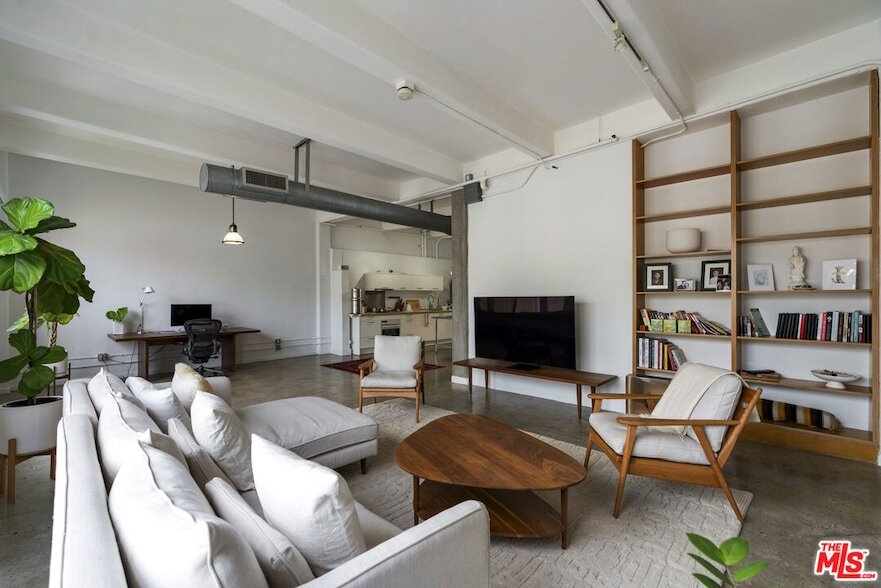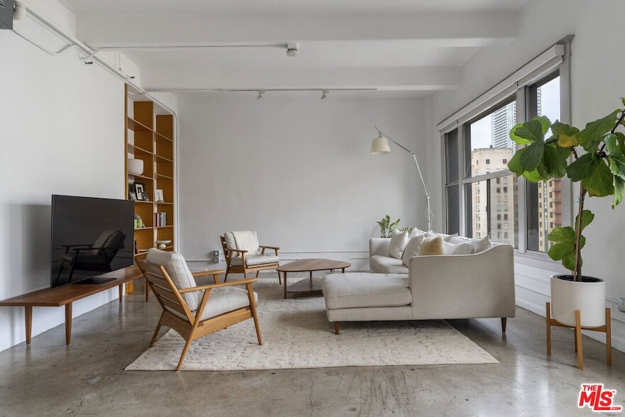 Seize a truly rare opportunity to own the full-floor PENTHOUSE at the iconic Tomahawk Lofts, a boutique historic gem set on one of the most coveted blocks in Downtown L.A.'s vibrant Fashion District. Spanning approximately 1,820 square feet, this extraordinary live/work loft is designed to inspire. A private keyed elevator opens directly into the residence, delivering unmatched privacy and an immediate sense of arrival. Stretching from Spring Street to Main Street, the home enjoys rare street-to-street frontage, with oversized windows on both sides framing captivating eastern and western city views, flooding the space with natural light and creating exceptional cross-ventilation. The expansive open floor plan offers remarkable flexibility, ideal for both creative living and entertaining. Architectural character abounds with 11-foot exposed concrete slab-and-beam ceilings, a dramatic glass skylight, and custom built-in bookcases, all complemented by generous storage throughout. Modern upgrades include a newer central HVAC system and in-unit washer and dryer for everyday convenience. Originally built in 1914 and thoughtfully reimagined in 2004, the Tomahawk stands as a cornerstone of early modern architecture in the Spring and Main corridor. As a designated Los Angeles Historic-Cultural Monument and MILLS ACT-approved property, it offers significant property tax savings while maintaining updated plumbing, electrical, and seismic systems. Additional highlights include access to secured garage parking conveniently located adjacent to the building. Perfectly positioned in the heart of DTLA, you're just moments from premier dining, retail, and cultural destinations, with effortless access to the Arts District, Little Tokyo, South Park, Historic Core, and beyond. This is more than a residence, it's a one-of-a-kind, irreplaceable piece of Los Angeles history.