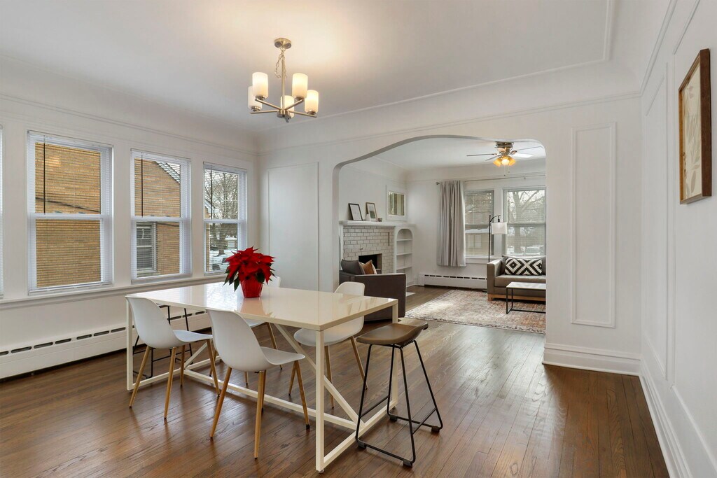 Property Id: 2408850 Welcome to this charming and spacious first-floor flat in the heart of Waukegan, offering comfort, character, and a convenient location for both short and extended stays. Located in a classic brick duplex, this thoughtfully furnished home features bright living spaces, cozy bedrooms, and a fully equipped kitchen, perfect for relaxing after a long day or enjoying time with family and friends. The living room is warm and inviting, ideal for unwinding or watching TV, while the kitchen includes essential appliances, cookware, and a dining area for easy at-home meals. Guests have private access to the first-floor unit, with the only shared space being the basement, where the washer and dryer are located. Laundry machines are clearly labeled for upper- and lower-level use to ensure a smooth and convenient experience. The home also includes high-speed Wi-Fi, air conditioning, and driveway parking. Situated in a quiet, residential neighborhood, this flat offers the perfect balance of charm and accessibility. You’ll be just minutes from beautiful outdoor spaces like Bowen Park, Victory Park, and Lyons Woods Forest Preserve, ideal for walking, relaxing, or enjoying nature. Waukegan, often called “Green Town,” is known for its scenic parks, ravines, and lakefront along Lake Michigan, including the nearby harbor and lighthouse with stunning views. Downtown Waukegan is only a short drive away and features local favorites like the historic Genesee Theatre, the Waukegan History Museum at the Carnegie, as well as a variety of restaurants and cultural attractions. The Metra station is about 7 minutes away, offering convenient access to Chicago and surrounding areas. For those visiting for military, work, or family, this an excellent option for extended stays. The Naval Station Great Lakes and Abbive, Inc are about 15 minutes away and there is easy access to major roads, hospitals, shopping, and local amenities. This home provides both comfort and convenience in a welcoming setting.