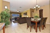 Welcome to your dream vacation retreat near Disney! This spacious 1,856 sq ft villa in Windsor Palms Resort accommodates up to 8 guests with 4 bedrooms and 3 bathrooms, including 2 en-suites. Relax in your private pool, enjoy al fresco dining on the patio, and take advantage of incredible resort amenities like a clubhouse, gym, tennis courts, and a playground. With Disney just 8 minutes away, this fully equipped home is perfect for family getaways or trips with friends! Relax in the cozy living room featuring plush sofas, a large flat-screen TV with cable, and high-speed internet. The open floor plan connects the living space with the dining area, offering a seamless flow for family gatherings. Cook up a feast in the fully equipped kitchen with modern appliances, cookware, and cutlery. The indoor dining area seats six, perfect for meals together or planning your next day's adventures. The villa features a king bed with an en-suite bathroom and serene decor, a queen bed with ample natural light, and two bedrooms with two twin beds each, ideal for kids and younger guests. Three bathrooms, including two en-suites, are clean and stocked with starter essentials for your convenience. We offer additional services to enhance your stay, including pool heat for $35 per day, BBQ grill rental with propane tank, and highchair or Pack 'N Play crib rental with varying fees. Park up to 2 vehicles in the private driveway. Enter the secure gated community with 24/7 security for peace of mind. Located just minutes from world-famous attractions, you can reach Disney Parks in 8 minutes, Universal Studios and Islands of Adventure in 20 minutes, and Legoland in 50 minutes. Local shopping and restaurants are just 3 minutes away, and beaches are a 1-hour and 15-minute drive. Minimum renter age is 25 and maximum occupancy is 8. No pets, parties, or events are allowed. Pool and home maintenance is regularly scheduled for your comfort. Check-in is at 4:00 PM and check-out is at 10:00 AM. Flexible times may be available upon request, subject to availability and fees. A guest screening process will be conducted, and further instructions will be provided to complete this step. A starter pack includes small amounts of cleaning supplies, dish soap, and toiletries. Guests may need to purchase additional items during their stay. [SI]