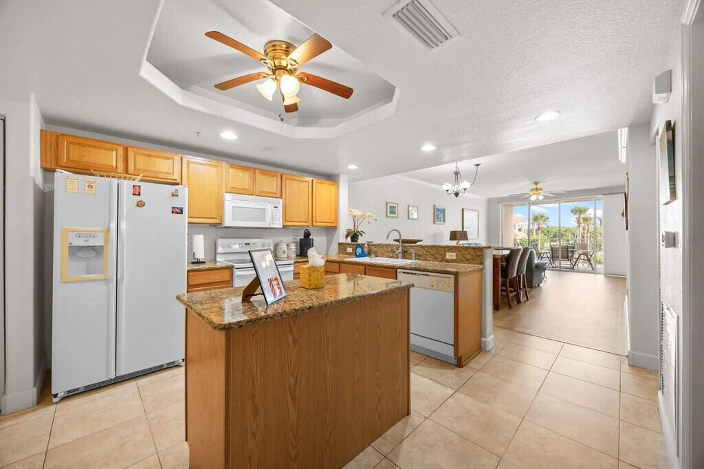 Welcome to Mystic Tides, a serene beachside condo in the Villages of Seaport community in Cape Canaveral. This charming home offers direct beach access, resort-style amenities, and a spacious balcony perfect for al fresco dining. Unwind in the Jacuzzi tub, take a dip in the pool, or enjoy a leisurely stroll to the ocean, just steps away. Step into your coastal home away from home. This 3-bedroom, 2-bath condo features a cozy living room with two plush sofas, ideal for movie nights or relaxing after a beach day. The master suite includes a Jacuzzi tub for ultimate relaxation, while two additional bedrooms comfortably accommodate family or friends. The fully stocked kitchen provides everything needed to cook a full meal or enjoy coffee at the breakfast bar. Gather at the dining table that seats eight or enjoy a casual bite on the bar stools. Fast Wi-Fi and a dedicated workspace make longer stays a breeze. Onsite parking is available with two reserved spaces. The community offers multiple pools, a private gym, tennis and racquetball courts, and a clubhouse for socializing and relaxation. The rooftop balcony provides a great space for launch views from the nearby Kennedy Space Center. This condo is available for stays of 30 days or more. Explore the vibrant neighborhood surrounding this condo and discover why it's the perfect place to stay. Cape Canaveral, a gem on Florida's Atlantic coast, offers a blend of natural beauty, recreational opportunities, and proximity to world-renowned attractions. Enjoy private beach access just a short stroll away, or visit the Kennedy Space Center for an awe-inspiring experience. Nature lovers will appreciate nearby wildlife preserves and the Canaveral National Seashore, while Port Canaveral offers a vibrant waterfront area filled with restaurants, bars, and shops. This property requires a lease and HOA application. Mailbox access is not available for guests. No pets are allowed. All reservations require either a refundable security deposit or the purchase of a damage waiver. An initial stock of essentials such as paper towels, toilet paper, tissues, coffee pods, creamer, sugar, light cleaning supplies, garbage bags, sponges, dish soap, and dishwasher tabs is provided. Additional supplies need to be replenished by guests as needed.