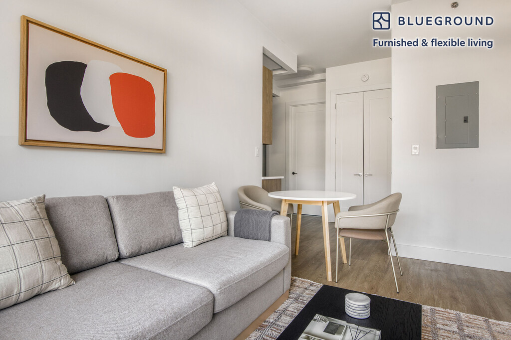 Show up and start living from day one in New York with this pretty one bedroom Blueground apartment. You’ll love coming home to this thoughtfully furnished, beautifully designed, and fully equipped Boerum Hill home. (ID #NYC1513) The advertised rate of $3,770/month is the lowest available price, based on a 1 month(s) and 3 day(s) stay with a move-in date of January 5, 2026. If you’re looking for a 1-year stay, the rate is $4,350/month. Rates vary depending on the duration of stay, season, and other parameters. For exact pricing and additional pricing components, please visit our website and enter your desired move-in and move-out dates. The rate is applicable when billed upfront; it can be higher if billed in multiple payments. Brokers are welcome to reach out. Were you looking for an unfurnished lease? Try Blueground instead and upgrade from unfurnished to furnished living: - Furnished at rates comparable to unfurnished - No setup or furniture costs - save thousands - Move-in ready - save time, just bring your suitcase Designed with you in mind As with any Blueground apartment, you’ll find a thoughtfully designed space complete with beautiful furniture and a fully equipped kitchen in this one bedroom property. And, thanks to our superior quality mattresses, luxury linens, and towels, you can relax knowing you’ll always feel comfortably at home. When you’re ready for some fun, you can take in the New York vibes or bring the entertainment to you with the premium wireless speaker or smart TV. Sleeping arrangements Queen Bed, 63in/160cm Amenities Building amenities unique to this one bedroom apartment include an on-site: - Dryer in building - Elevator - Washing machine in building Arrival and ongoing support The entire apartment is yours to enjoy! Throughout your stay, you’ll have access to our Client Experience team through the Blueground App. You can schedule additional cleanings, submit maintenance requests, and view our neighborhood recommendations with just a few taps. We’ll share all details upon confirmation of your stay. Ideally Located Petite Boerum Hill is located in downtown Brooklyn. The convenient neighborhood is known for its historic row houses and lovely views. There are wonderful bakeries and Italian restaurants, as well as everything from African and Caribbean food to vegan diners in nearby Fort Greene. Boerum Hill is steps from the Barclays Center arena, where you can catch basketball and soccer games or the latest big-name concert. Another neighborhood highlight is the NY Transit Museum, a family friendly spot where you can see historic subway cars and buses and wander through an abandoned station. Nearby Fort Greene Park is perfect for a picnic or game of tennis. Boerum Hill has unparalleled subway and Long Island Railroad access, thanks to Atlantic Terminal. Other things to note Building amenities may have an extra cost. This Blueground apartment has flexible lease options, allowing you to book it for one month, a year, or more. Brokes CYOF. We take great pride in ensuring every photo displayed is shot in our own units with our actual furnishings. That said, we regularly refresh our decor and furniture arrangement, which may differ from what’s pictured. [SI]