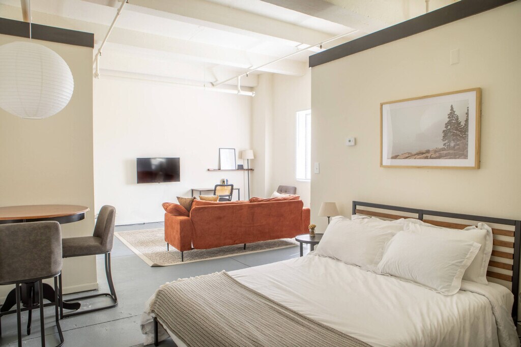 Feel at home in this apartment that sleeps two with a comfy queen-size bed. Amenities include a Smart TV, shared laundry room, self check-in, high-speed Wi-Fi, an iron, and a Keurig. The sofa may serve as additional sleeping space; however, it does not have a pull-out bed. The building does not have central air conditioning; however, a window A/C unit is installed in the living area, and a room fan is available for supplemental circulation. The radiant floor heating system is controlled by the thermostat. Reserved parking is not included. Metered street parking is often available throughout the neighborhood, and 2-hour time limits apply from 8am-6pm Mon-Fri and 8am-6pm Saturday. Overnight street parking is prohibited from December 1st to March 1st. For reserved parking, the SpotHero app is recommended as a convenient solution. All within three blocks, you'll find Fiserv Forum, Pabst Theater, Wisconsin Center, Third Street Market Hall, the Riverwalk, coffee shops, and several restaurants and bars. No parties, gatherings, or commercial uses are allowed. Smoking of any kind is prohibited anywhere on the premises, including outdoor spaces, and a $150 fine will be assessed, with additional fees for remediation that may apply. Quiet time is after 10pm. Guests must cover the cost to replace unreturned access devices, such as keys, key cards, fobs, or parking passes. Bookings by local guests are prohibited at this property. Includes a dedicated workspace. [SI]