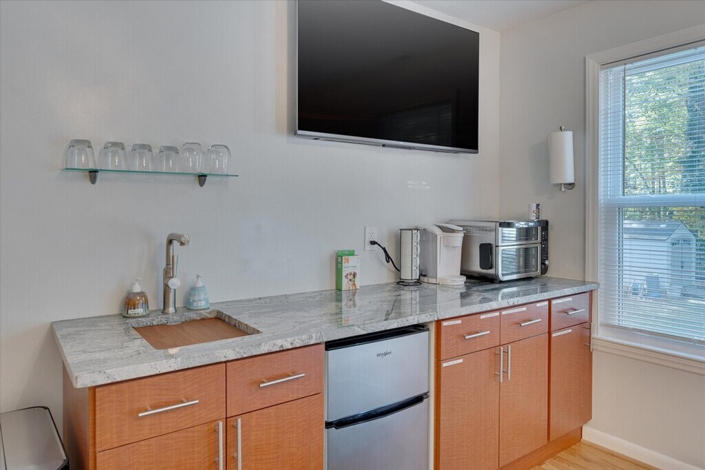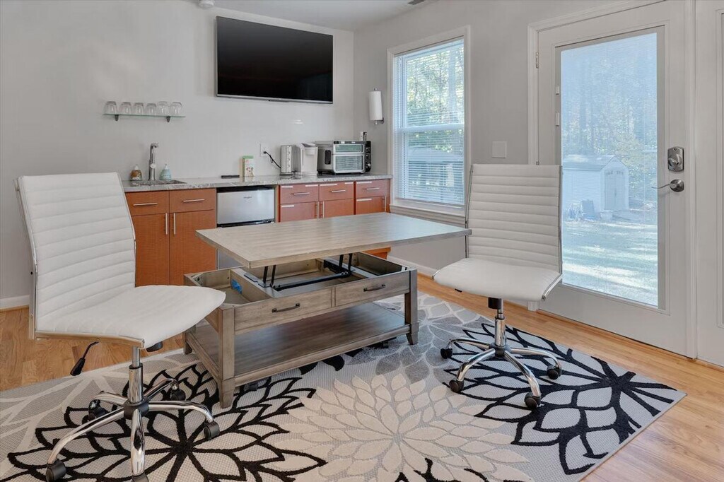 Feel at home in this quiet and peaceful studio apartment privately attached to a larger house with a private entrance through the back. It's perfect for long-term stays. This apartment offers a higher level of service. It is cleaned top to bottom for each new guest, including all kitchen appliances, floors, and dishes, along with new sheets. All touchable surfaces, remotes, and switches are sanitized and disinfected. The unit boasts 100% organic cotton cooling percale weave and soft breathable bed sheets and pillow cases. It features a washer and dryer and a modern bathroom. Pets are welcome. The apartment is in close proximity to SAS Campus and Downtown Cary, USA Baseball National Training Complex, NCSU, and Wake Med Hospital. Self check-in is always available. You will receive a door code on the day of check-in to allow yourself in. The door locks are mechanical and do not rely on electricity nor the internet to work. Customer service is available 24/7. [SI]