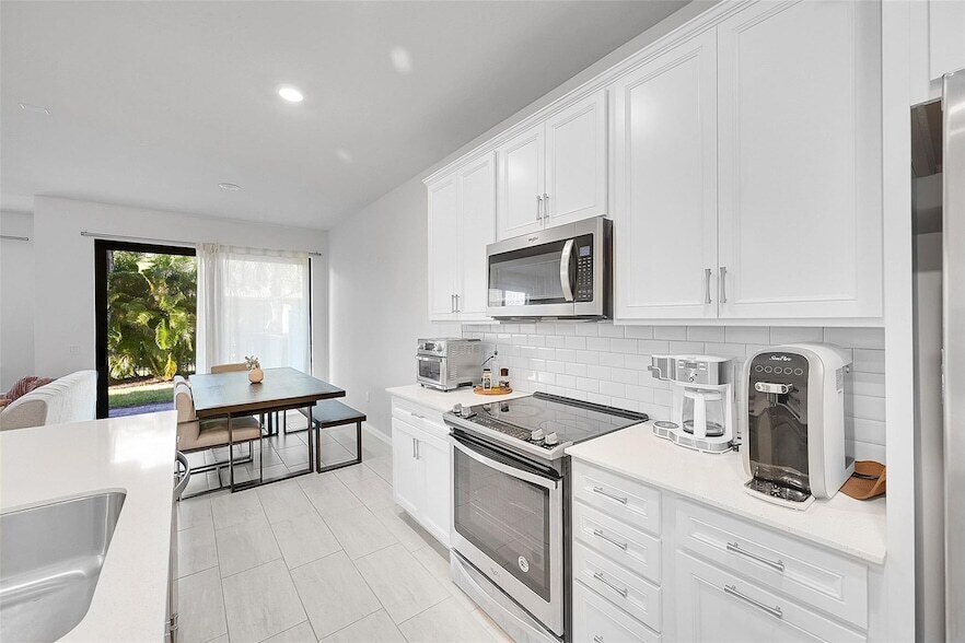 Beautiful like new 2021 Townhome in the All Ages/Gated community of The Fields. Freshly painted throughout, Shaker wood cabinets, large pantries, Quartz countertops, with subway tile backsplash that compliments the plank tile flooring. 2nd floor has split floor plan, dedicated laundry room, and newer carpet and upgraded padding in all the good-sized bedrooms. Big Master suite has a large walk-in closet and double Quartz vanity. Impact windows & doors. Family oriented community with two resort style community pools, workout facilities, Tennis & Pickleball, basketball, child playground. Great Schools within a half-mile, plenty of shopping, easy access to turnpike. Pets OK. Available May 16th