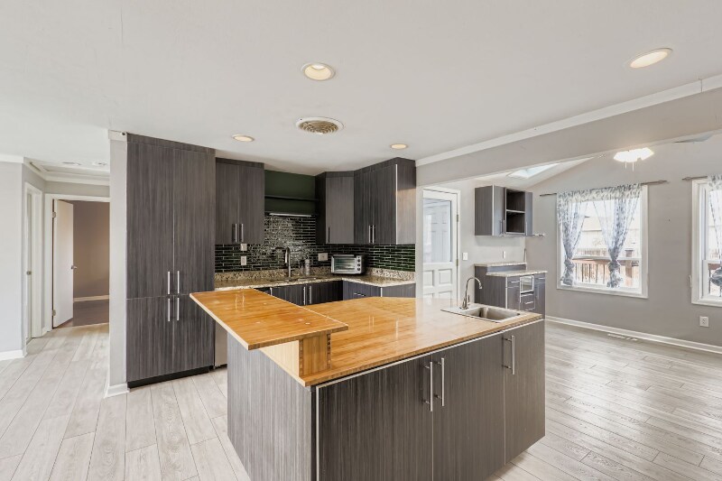 Property Id: 2218797 Welcome to this exceptional tri-level home in the heart of Welby! Meticulously upgraded over the past five years, this expansive property is among the largest and most desirable in the area. Offering abundant living space with minimal maintenance, it's ideal for families or those who love to entertain. A vaulted entry, full-size windows, and skylights fill the home with natural light. Outdoor living is a highlight, with a large backyard, covered deck, loft, walkway, and balcony providing impressive views. The main level features an open-concept living room, spacious kitchen, and dining area. The kitchen boasts a large island, stainless steel appliances, gas stove, convection and conventional ovens, and ample cabinetry. Two bedrooms and a full bath with a clawfoot tub complete this floor. Just a few steps up, a great room (“studio”) connects to a loft with panoramic views of downtown Denver and the mountains, plus access to both a covered deck and a charming balcony. The lower level offers two additional bedrooms, a laundry room, full bath with stone shower and double vanity, and a media room. Sliding doors open to a fully fenced, zero-scape backyard with artificial turf. Located on a quiet street near light rail, playgrounds, shops, and biking paths, the home is only 18 minutes from downtown Denver. The driveway's southern exposure eases winter shoveling, while the garage includes EV wiring, a workshop, and adjacent carport. Recent upgrades include a new deck, walkway, loft, heat pump, windows, water tank, solar panels, carport, and media room. Additional info: Minimal yard care required. Tenant pays Water, Sewer, Gas, Electricity, and Wi-Fi. No Smoking or Vaping.