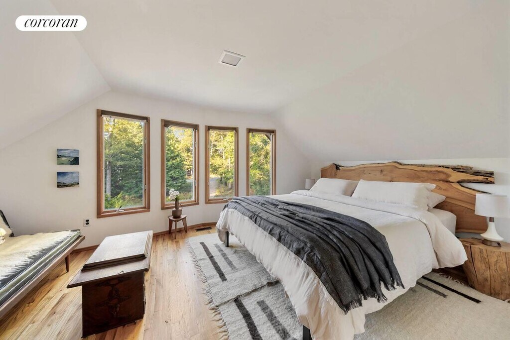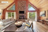 Located just 2 blocks from Sammy's Beach, in East Hampton, unwind at this stunning original Mid-Century home. This freshly renovated two story, three bedroom, two bath house was built with oak floors, cedar clad walls and ceiling, and antique details for a luxurious yet charming feel. It features a double height living area with floor to ceiling windows, wood burning stove, and integrated fully equipped kitchen and dining areas. Sliding glass doors lead to the expansive wraparound deck with Barbecue, dining and lounge areas, outdoor shower, and the large yard with seating and a firepit. The bedrooms are generously proportioned with 2 king and 1 queen beds, and upstairs there is a dedicated office and work out area with its own walkout balcony. Though quiet and elegant in nature, the home is modern where it counts. It features two large flatscreen TVs, 1 GB wi-fi and unlimited music and sound capabilities in every room. Enjoy long days on the beach, paddle board or kayak in Three Mile Harbor, or hikes through the nearby 116 acre Sammys Beach Nature preserve. Conveniently located 2 blocks from Sammys Beach, 7 minutes to East Hampton Village and only 10 minutes from Sag Harbor, the home is a true East End escape. [[Rental Registration # 25-1082]]