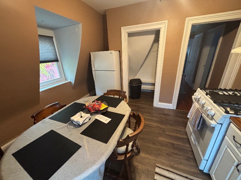 Property Id: 2235351 2 BR , 1 Bath Fully Restored Victorian Apartment in 4 Family home with Quiet Country Like City Setting, Fireplace, Full Eat in Kitchen, Tiled Kitchen and Bath, Hardwood Floors. On site Laundry, Off street Parking. Blocks to all public transportation, Stores, Restaurants, Entertainment, City and County Services, Colleges and Hospitals, Parks, and Bike Trails. Back Yard Deck with Barbecue and Lawn Furniture. Includes all utilities , furnished or unfurnished. Landlord on site.
