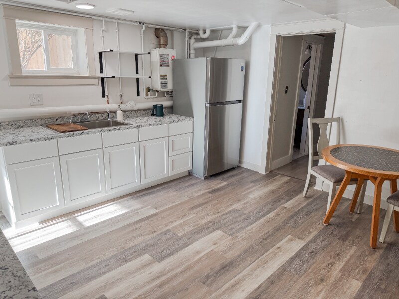 Property Id: 2207300 Welcome to the lower-level unit of this beautifully preserved 1915 home in downtown Grand Junction. This private, fully furnished apartment blends historic charm with modern comfort, perfect for business travelers, medical professionals, or anyone seeking a midterm stay. Enjoy a cozy living area with a smart TV and a convenient kitchenette featuring a compact fridge, microwave, prep space, plug-in hot plate, and dining essentials. Bedroom 1 offers a queen bed and walk-through closet, while Bedroom 2 features a twin-over-full bunk and charming storage. The updated bathroom includes a modern walk-in shower. Extras include private backyard access (shared with upstairs unit), and refrigerated air. Detached garage storage may be available upon request. Just minutes from downtown, major hospitals, and attractions. **Monthly cleaning required at the tenant's expense.