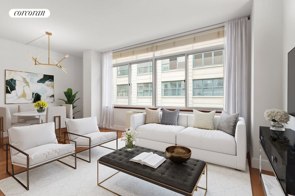 Welcome to 84 Front Street #5D - 1 bedroom 1 bathroom at The Nexus in Dumbo.This open concept floor plan features oversized windows, beautiful hardwood flooring and high ceilings. The living and dining area is spacious and can accommodate different furniture layouts. In the open chefs kitchen, there is an abundance of cabinetry, a breakfast bar and stainless steel appliances. The open kitchen seamlessly ties the whole living space together perfectly.The bedroom is generously sized and has great closet space and is conveniently located just adjacent to the bathroom. The bathroom is tiled throughout and has a deep soaking tub.Rounding out this special home is an in-unit vented W/D, a large entry foyer and a storage cage that comes with the apartment.84 Front Street is a boutique condominium building with part-time concierge service and video security, fitness center, backyard courtyard, and pristine lobby.Located in the heart of Dumbo, one of Brooklyn's most desirable neighborhoods and surrounded by restaurants, shops, nightlife, Brooklyn Bridge Park, and the Empire Stores. Conveniently located near subways, Citibikes, the water ferry, and all that DUMBO has to offer.Contact the leasing team to schedule a tour!Photos are virtually staged and are for illustrative purposes only!No Pets Allowed! $400 Daisy Lease Handling Fee payable to Daisy Management, LLC $250 Move-in fee payable to the building $250 Move-out fee payable to the building $1,000 Move-in deposit payable to the building $1,000 Move-out deposit payable to the building