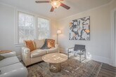 Take it easy at this cottage-style apartment in Five Points! Surrounded by big trees, this home gives you the feeling of being tucked away while being close to the conveniences of everyday life. This home is on the second story and requires climbing a set of stairs to reach the front door. Walking in the front door, you'll immediately feel the coziness this home provides. The living room has two comfy couches and a 55-inch Roku TV. The fully equipped kitchen includes a stacked washer and dryer. Enjoy the patio and an outdoor fire pit area. Pets are welcome on the premises, and a pet fee of $125 applies. Please ensure to inform us in advance to secure authorization for bringing a pet. You are required to clean up after your pet, including waste or additional charges may apply. Only 2.4 miles from Downtown Athens and 1.8 miles from Stanford Stadium, this apartment is near Barberitos, The Cafe on Lumpkin, J Christopher's, Marker 7 Coastal Grill, ZZ & Simmone's, Botanical Gardens, UGA Golf Course, and Sanford Stadium. A car will most likely be needed, but there is also a bus that stops nearby, and Uber and Lyft are also accessible. Guests will receive a door code the day prior or the morning of their reservation. Guests will be able to access the gravel parking pad that is shared amongst the other properties on the lot. Guests will be able to access the house in the back corner of the property and the courtyard/fire pit combo off to the side. [SI]