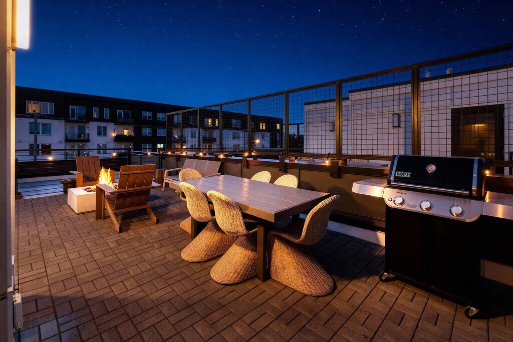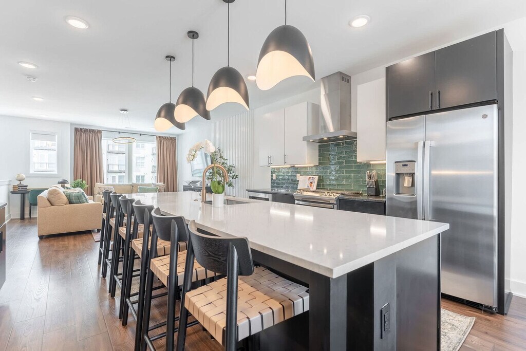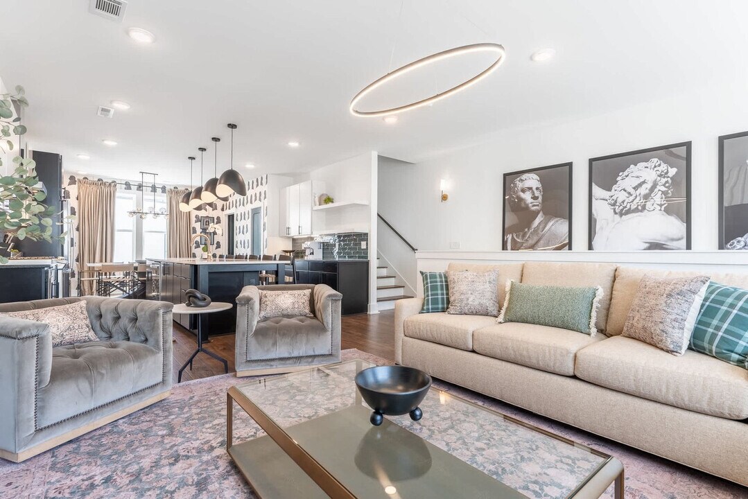 Feel at home in this luxury Nashville retreat, Glow & Gather, featuring a rooftop fire pit and skyline views just 3 miles from Broadway. Designed for groups, this home is perfect for bachelorettes, families, and friends. Glow & Gather combines bold design with group-ready comfort in The Lucy, a luxury vacation community near East Nashville and Germantown. This home offers a chef’s kitchen with quartz countertops and seating for 14 guests, memory foam mattresses, custom darkening drapes, curated custom art, bold design features, a coffee station with drip and pod options, USB charging stations next to every bed, central climate control (AC + Heating), a secure smart lock keyless entry, premium linens and towels, a stylish living room with smart TVs and Wi-Fi access, a washer and dryer in unit, built-in makeup and getting ready areas, and an outdoor rooftop dining and lounge space. Private garage parking with 2 spaces is available (Note: Vehicles over 19’ will not fit). Free street parking is also available. Welcome to the vibrant neighborhood surrounding Glow & Gather at The Lucy! This dynamic area is just a stone's throw away from downtown Nashville, bustling with energy and excitement. Explore nearby hotspots like trendy East Nashville or the historic Germantown district, where you can discover local boutiques, art galleries, and charming cafes. Indulge in Nashville's renowned culinary scene by dining at top-rated restaurants such as The Southern Steak & Oyster or Husk Nashville, both located just minutes away. With easy access to main roads and public transport, exploring Nashville's landmarks is a breeze from 'Nash Eras.' Smoking is prohibited inside the property or near open doors or windows, and a minimum $500 fine applies for violations. Quiet hours are 10pm–8am on weekdays and 12am–8am on weekends. Registration Number: [SI]