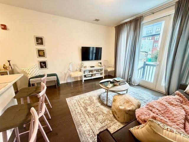 Over-sized 1 bed/1bath at Iyla Condominiums. This spacious super chic modern apartment comes complete with your very own private deck and backyard oasis which awaits your entertaining and relaxing pleasure! High end finishes and features 811 sq ft of open living/dining/kitchen space with high ceilings, dark hardwood flooring, stainless steel Samsung appliances, quartz counters, chandelier lighting, Central Heat & Air + private laundry room with full sized frontloading Samsung washer & dryer! The large bathroom has a vanity with marble top. The extra-large master bedroom contains a double closet and plenty of room for extra armoires if you need it. Parking is available directly across the street for a fee. This boutique elevator building was just built in 2017. Your commute into New York City is easy with The Journal Square PATH train being just minutes away. Explore this awesome neighborhood surrounded by shops, restaurants and boutiques, Mana Contemporary and Mod Cup just around the corner. See all this home has to offer today!