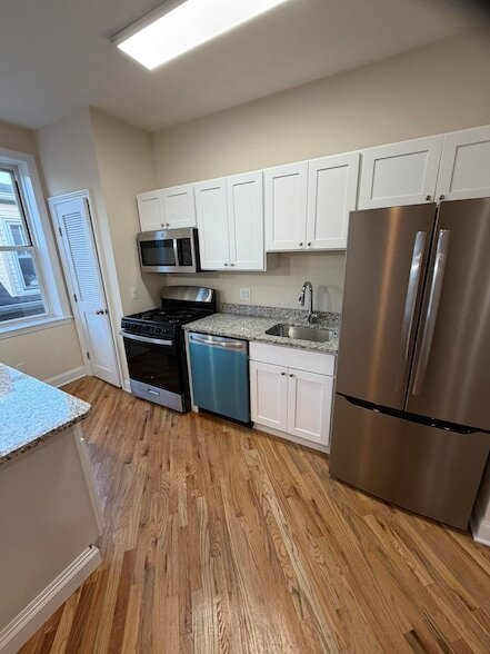 Fully Renovated 1 Bedroom Top Floor Apartment in North Bergen. Welcome to 8517 4th Avenue, Unit C3, a beautifully gut-renovated 1 bedroom apartment located on the top floor of a well maintained walk-up building. This apartment has been completely rebuilt from the studs and features high-end materials, modern lighting, and a clean NYC-loft style design throughout. The home offers a brand-new kitchen with stone countertops, stainless steel appliances, and a new French door refrigerator. The sleek modern bathroom features designer tile, contemporary fixtures, and a new glass shower door that adds a modern and sophisticated look. The apartment also includes new windows, flooring, lighting, and updated electrical. The spacious living room features tray ceilings with LED accent lighting, while the king-size bedroom offers double closets and excellent natural light. The apartment is equipped with an Instant Heat Thermal System providing efficient and reliable heating and offers open views and abundant sunlight. Conveniently located near transportation, shopping, dining, and major highways, this is a move-in ready home ideal for tenants seeking modern finishes and quality craftsmanship. For more information or to schedule a showing, please contact CLOSE TO SHOPPING STORES, NYC BUS STOPS, VERY COMMUTABLE, EXCELLENT TOWN TO LIVE IN! CLOSE TO ALL HIGHWAYS, UTILITIES ARE NOT INCLUDED. NO SMOKING OR PETS ALLOWED. **THIS IS A TWO-YEAR LEASE - SECTION 8 APPLICANTS INVITED TO APPLY **