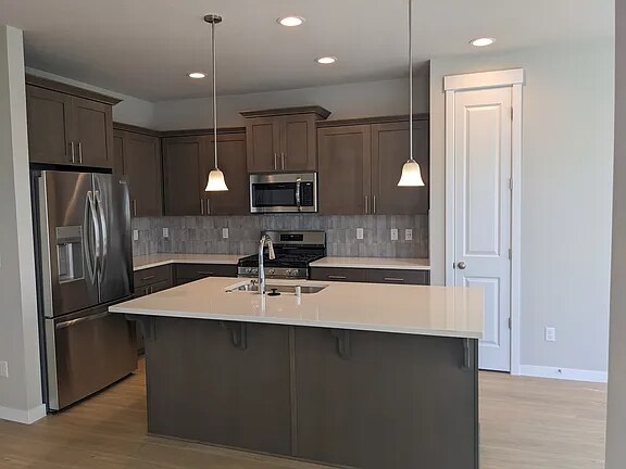Property Id: 2374837 Beautiful newer build featuring 3 bedroom home, 2.5 bathrooms, with a 2-car garage on a corner lot! Home features a gas fireplace, 9ft ceilings on main level, quartz countertops, alder wood cabinets, with high end kitchen features including upgraded appliances. Upstairs there is also a primary suite with a walk-in closet, and two other bedrooms. The house has A/C, and a front yard with in ground sprinklers, on a fully fenced corner lot with mountain views from the second floor! This is a must see rental house that will go fast. Community features walking trails, green spaces, and park areas. All Applicants over the age of 18 must submit an application. Applicants must have verifiable income that represents 3 times the rental amount, i.e. pay stubs
