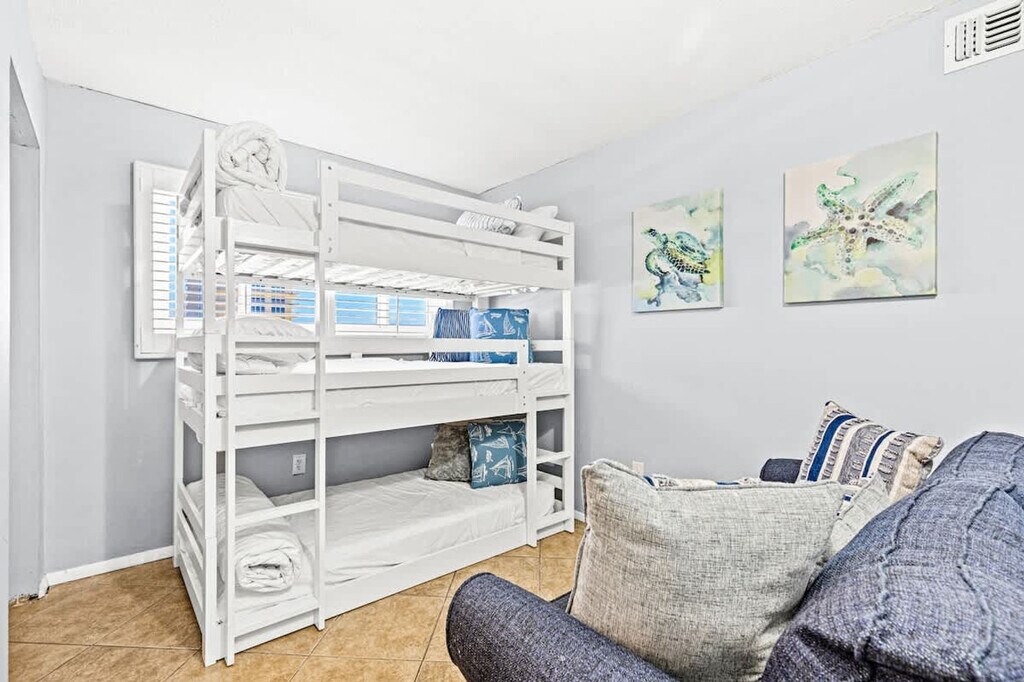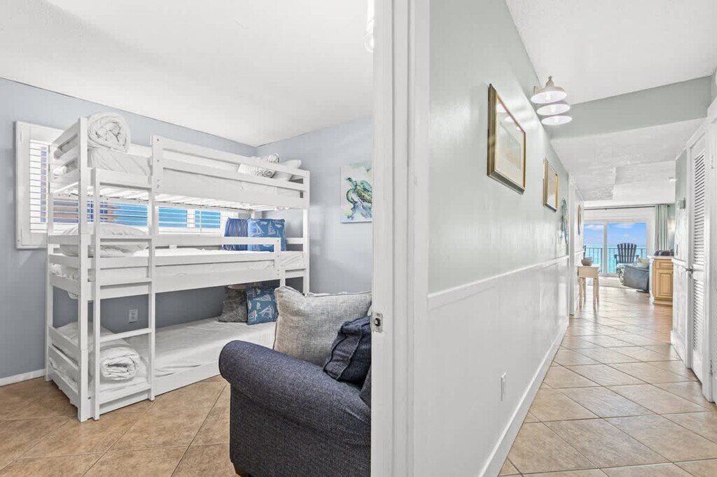 Feel at home in this 1-bedroom, 1.5-bath condo at The Summit, offering direct beachfront access and a practical layout for couples or small families. The private bedroom includes an attached half-bath, while a full bathroom with a shower/tub combo is accessible from the hallway. A set of built-in bunks and a sleeper sofa provide additional sleeping space. The kitchen is fully equipped for everyday cooking, and the private balcony overlooks the beach, offering a simple place to relax and enjoy the view. The resort is centrally located near restaurants, entertainment, and attractions like ZooWorld and WonderWorks. Guests have access to two beachfront pools, hot tubs, and an on-site snack bar, and a fitness room. The property is undergoing a balcony restoration project (Sept 2025 - Jan 2026). Dates are subject to change based on weather and progress. Balconies will be closed during this time, furniture may be stored inside, and guests should expect noise and dust. Please verify if you will have access to your balcony during your stay. No refunds, discounts, or relocations will be provided. Check-in is at 4 PM CT (5 PM Spring Break and Major Holidays). Quiet hours are observed between 11 PM and 7 AM. Per PCB Ordinance 1632, the maximum occupancy is 5 guests, including children and infants. Failure to abide by the ordinance may result in fines and ejection. The minimum age to book is 18+. [SI]