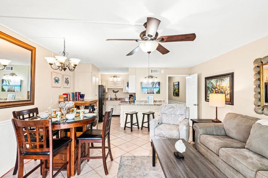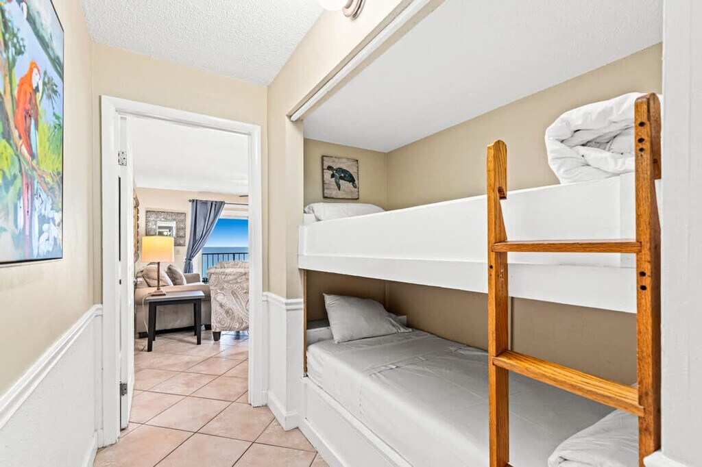 The advertised rate of $2,351/month is the lowest available price, based on a 1 month(s) and 2 day(s) stay with a move-in date of February 27, 2026. Rates vary depending on the duration of stay, season, and other parameters. For exact pricing and additional pricing components, please visit our website and enter your desired move-in and move-out dates. The rate is applicable when billed upfront; it can be higher if billed in multiple payments. Feel at home in this cozy oceanfront condo in Panama City Beach, offering easy beach access and shared pools and a hot tub. This 1-bedroom, 1-bath condo sleeps 5 and features a walk-in shower. Inside, guests can relax and cool off in central air conditioning. A charming, fully equipped kitchen (complete with a breakfast bar) is ready for all your vacation cooking projects. Enjoy a view of the shared pool from your furnished private balcony. A washer and dryer are included for your convenience. Private beach access through the pool deck means you'll have a direct path to the sun and surf whenever you're ready to slip away. Besides the beautiful beach being steps away, this condo is in a prime location to enjoy everything Panama City Beach has to offer. Head just under two miles to the eastern end of Panama City Beach and visit St. Andrews State Park, where guests can explore the pier and hop on a shuttle boat tour. Hop on a ferry to the famous Shell Island. Zoo World Zoological Park offers opportunities to get up close and personal with animals and is approximately 1 mile away. Families will love Shipwreck Island Waterpark (3 miles from the condo) with its lazy river, water slides, and designated toddler area. Check out Pier Park, with its huge variety of shops and restaurants, a short 15-minute drive away. The Sky Wheel Panama City Beach offers fantastic views of the Gulf to guests brave enough to board. The property is undergoing a balcony restoration project (Sept 2025 - Jan 2026). Dates are subject to change based on weather and progress. Balconies will be closed during this time, furniture may be stored inside, and guests should expect noise and dust. Please verify if you will have access to your balcony during your stay. The indoor hot tub is closed until further notice for renovations in January 2026. Quiet hours are observed from 11 PM to 7 AM. Per PCB Ordinance 1632, maximum occupancy is 5 guests, including children and infants. Failure to abide by the ordinance may result in a fine and possible ejection. The minimum age to book is 18+ and check-in is at 4 PM CT (5 PM Spring Break and Major Holidays). [SI]