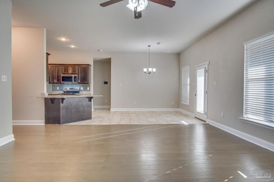 Ready Now! 3-bedroom, 2-bath brick home, built in 2018, is located in Northeast Pensacola and offers high ceilings, a split bedroom floorplan, and an open living area. The eat-in kitchen features dark-stained wood cabinets, granite countertops, a large pantry, stainless steel appliances (built-in microwave, stove/range, refrigerator, and dishwasher), and a built-in desk with a granite top. The primary suite includes carpet, a private ensuite with a garden tub, a walk-in shower, a dual-sink vanity, a water closet, and a huge walk-in closet. Two additional bedrooms sit at the front of the home, one with LVP flooring and one with carpet. Indoor laundry includes a washer and dryer. Outside, enjoy a privacy-fenced backyard with a covered porch and open patio. Pet-friendly with owner approval and a $250 non-refundable pet fee (no aggressive breeds). Residents are required to have renter liability insurance, which can be added for $11.95/month, or you can opt into the Resident Benefits Package (RBP) for $45/month, which includes liability insurance, HVAC air filter delivery, and on-demand pest control. 1 2 off first month s rent! Currently occupied, please do not disturb residents.