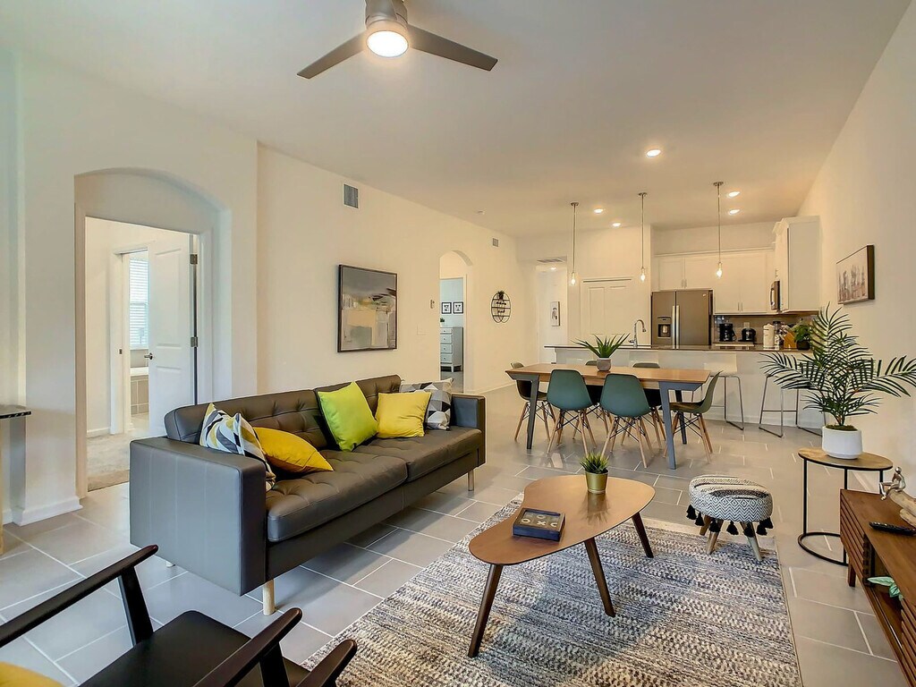 Experience the excitement of the new Epic Universe park this May 22nd by booking your stay at this luxurious condo in the heart of Champions Gate, just minutes from Walt Disney World Resort. This spacious property offers a stylish, sun-inspired design with luxury amenities, making it the perfect choice for families and groups seeking a memorable getaway. Welcome to your luxury home away from home! This condo features a thematic Disney room ideal for families with kids, a fully equipped kitchen for all your cooking needs, free high-speed internet, smart TVs, and a washer and dryer for your convenience. Enjoy full access to resort amenities, including two luxury clubhouses, a water park, heated swimming pools, and more. Secure parking is available in the garage. Optional services are available to enhance your stay, including pool and hot tub heating, pack and play for infants, high chair, early check-in, late check-out, extra cleaning, or linen change. Additional fees apply for these services, and they are subject to availability. Located in the heart of Champions Gate, this condo is just minutes away from Walt Disney World Resort and a short drive to Universal Studios and SeaWorld. Enjoy nearby local restaurants, shopping at Target and Publix, and golfing at Champions Gate Golf Course, all within a few miles. Transportation options like Uber and Lyft are readily available. This property is strictly for vacation purposes with no smoking or pets allowed. Only registered guests are permitted on the premises, and a guest list must be submitted for resort access. Keyless entry is provided for a seamless check-in experience, and our team is available for dedicated support throughout your stay. Please treat the home with care and respect as you would your own. The condo includes a laptop workspace with a desk area for productivity, ensuring a comfortable remote work-friendly environment. A laptop computer is not included. [SI]