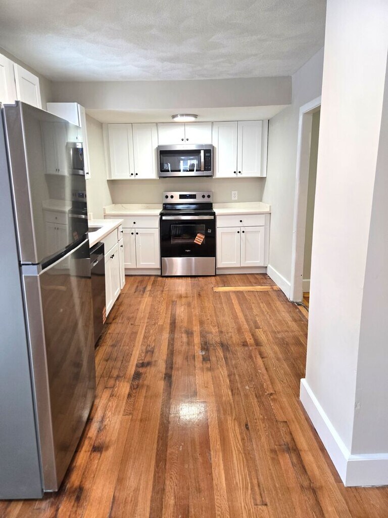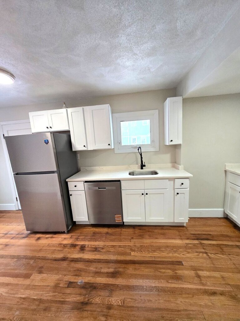 This brand-new first floor unit has been completely renovated and is ready for move in! Includes fresh paint, spotless hardwoods and brand new everything throughout Large kitchen with stainless appliances, new, solid-wood cabinets, new dishwasher and new fixtures Bright and sunny family room with just finished hardwoods and great natural lighting Two spacious bedrooms with great closet space and hardwood flooring New bath with custom flooring, tiled shower, new granite vanity, and full tub Heat and hot water included – Tenant responsible for electric only Pets negotiable Off street parking for one car Located nearby Slater Park, local restaurants, schools, parks, and a 5-minute drive from I 95 and Route 1