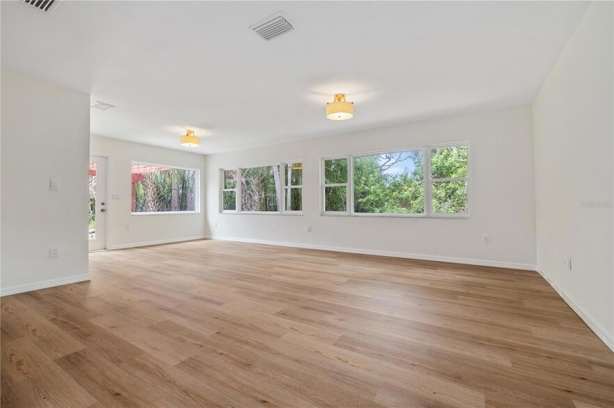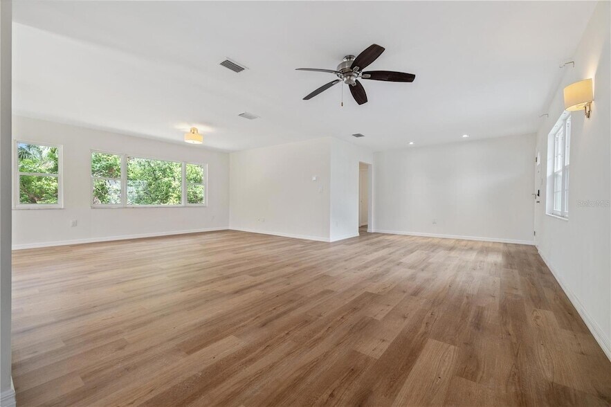 Beautifully updated home on a 1 4-acre saltwater canal lot with a private dock and boat ramp! This light-filled home offers an open floor plan with luxury vinyl throughout, a spacious, fully re-plumbed inside, tankless hot water heater, newly remodeled kitchen featuring ample cabinet space, quartz countertops, new stainless steel appliances, tiled backsplash, and water views. Both bathrooms have been fully renovated with tiled showers, glass doors, and modern finishes, including a lighted mirror in the primary suite. Enjoy a large walk-in closet in both bedrooms, a two-car garage with front and rear doors allowing easy access for boat storage, and a rear patio with pergola perfect for entertaining and enjoying the water views. The property is adjacent to a peaceful conservation area for added privacy and can be seen from multiple windows. Call today to schedule a tour!