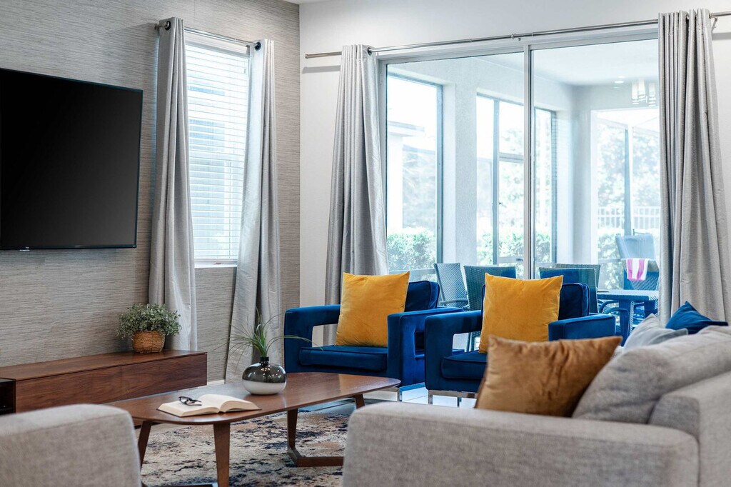 Feel at home in this expansive villa nestled in Solara Resort, designed for families seeking the ultimate Orlando adventure. This villa features 6 spacious bedrooms, 5 bathrooms, 2 living areas, a game room, a large full kitchen with stainless steel appliances, 2 indoor dining areas, and an outdoor oasis. Enjoy the convenience of a free washer and dryer. If you would like to add pool and spa heating to your reservation, please request it in writing a week prior to check-in. The cost for this amenity is $35 per day of stay. The Solara Resort Grand Clubhouse features an expansive water complex. A wave simulator offers a perfect opportunity to learn how to surf, or show off your skills. The little ones will prefer the splash pad for some fun in the sun. Cool off with an ice-cream from the Solara Resort ice-cream parlor or a cold drink from the bar by the pool. Nearby attractions include Disney World (7.6 miles), Universal Studios (21.7 miles), SeaWorld (16.5 miles), Falcon Fire Golf Course (11.7 miles), Disney Golf Course (13.7 miles), Premium Outlets (20.8 miles), and Orlando International Airport (27 miles). Quiet hours are between 10:00 PM and 8:00 AM. There is absolutely no smoking and no drugs allowed inside the home or elsewhere on the property. Only the number of guests indicated on the reservation are allowed to stay overnight, unless otherwise agreed upon in written form. Up to 2 cars may park side-to-side in the driveway in front of the garage. Please respect the neighborhood and neighbors. Be considerate while socializing outdoors after 10 PM and before 8 AM, and keep excessive noise to a minimum during this time. We reserve the right to terminate a reservation without refund, and/or pursue monetary fines if guests are found to be in violation of any of these rules. In the event you stay beyond the original scheduled check-out time of 10 AM, you may incur a fee of up to $300. [SI]