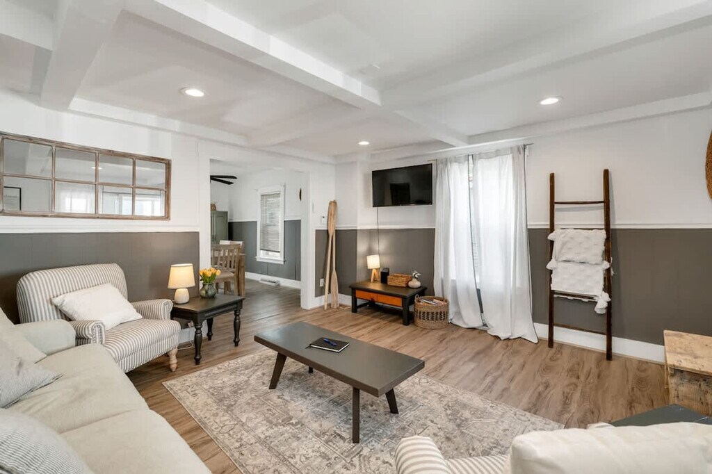 Feel at home in this charming suite, your perfect beach getaway just one block from the ocean in the heart of downtown Hampton Beach. This 2-bedroom suite is located up one flight of stairs. This suite features a queen bed, a full bed, a full bathroom, and a brand-new kitchen. Enjoy the cozy three-season sun porch, ideal for morning coffee or evening unwinding. The suite comes with one parking space along the white fence directly in front of the building. Parking is very tight, and if you bring a large or additional vehicle, you will need to find parking in a nearby lot. Parking lots are within walking distance on the boardwalk. The Hampton Park & Ride, where you can park overnight for free, is also a few minutes down the road. Enjoy easy walking access to shops, parks, restaurants, the beach, and lively local entertainment. The suite is 500 feet from Ocean Blvd where the boardwalk is in downtown Hampton and the ocean is across the street. It is located on a dead-end road. Quiet hours are between 9 pm and 8 am. Guests should not leave the apartment in a state that requires excessive or deep cleaning. Trash pickup is Monday and Friday; please make sure your trash is in your designated blue bin out front, and all recyclables go in the green bins out back. Disruptive gatherings and parties are prohibited. Please lock the doors when not home and when you leave after your stay. [SI]