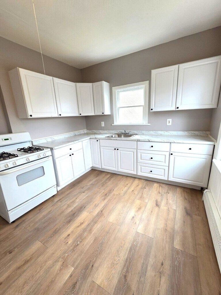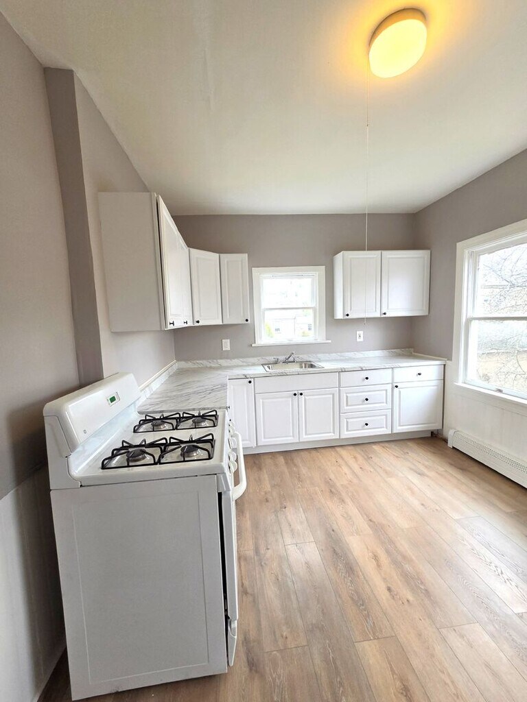 This split level unit has over 1,500 sq. feet of living space • Includes fresh paint and new flooring throughout • Large eat-in kitchen with gas cooking, and ceramic tile • Over-sized, bright and sunny double parlor with newer laminate flooring and full-length windows • All beds have hardwoods, and warm vinyl windows • Clean baths with new flooring and full tub • Comfortable steam heat • Tenant responsible for gas and electric • Owner takes care of water/sewer, snow removal and landscaping • No Pets • Two off street parking spots in driveway • Great Pawtucket location, seconds to 95, minutes to downtown Providence and only a ten minute drive to the South Attleboro Commuter Rail • Walking distance to bus line and laundromats