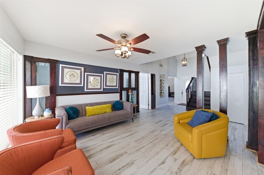 Enjoy comfortable living in this beautifully updated contemporary home on an oversized lot. Offering 4 bedrooms and 2.5 baths, the flexible layout includes two bedrooms downstairs and two upstairs connected by a Hollywood bath, while the spacious primary suite features double sinks and a sleek frameless glass shower for a spa-like retreat. The family room and formal living room showcase tall vaulted ceilings that create an open, airy feel. The kitchen features stylish countertops, stainless steel appliances and a spacious center island to make prep work a breeze. Refrigerator plus washer and dryer are included. Relax under the covered patio overlooking a generous backyard. Community amenities include a pool, clubhouse, and tennis courts. Zoned to Cy-Fair ISD with quick access to Beltway 8 and Hwy 290. Garage conversion is occupied and not included in the lease.