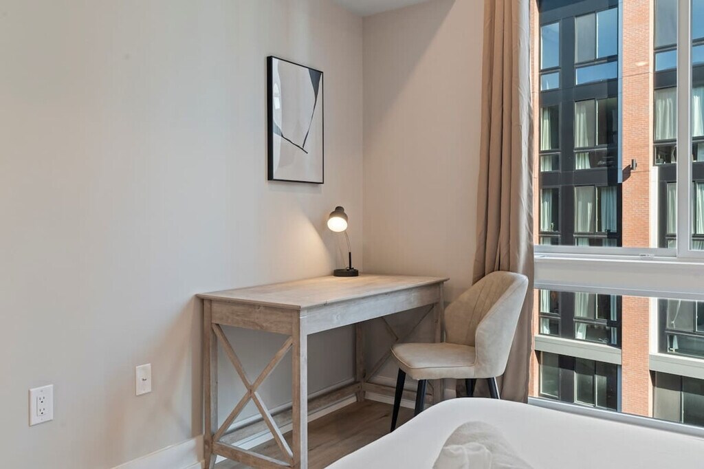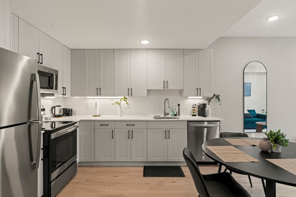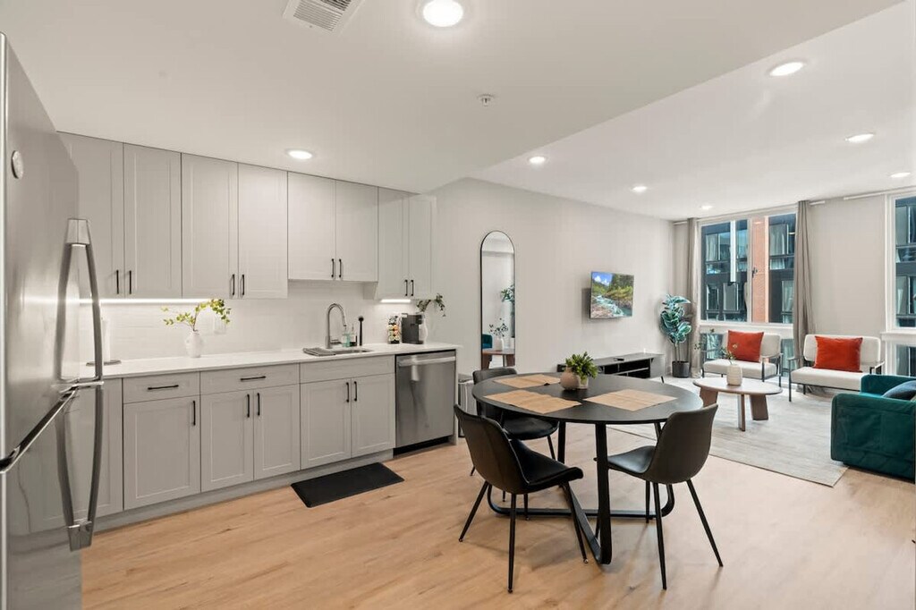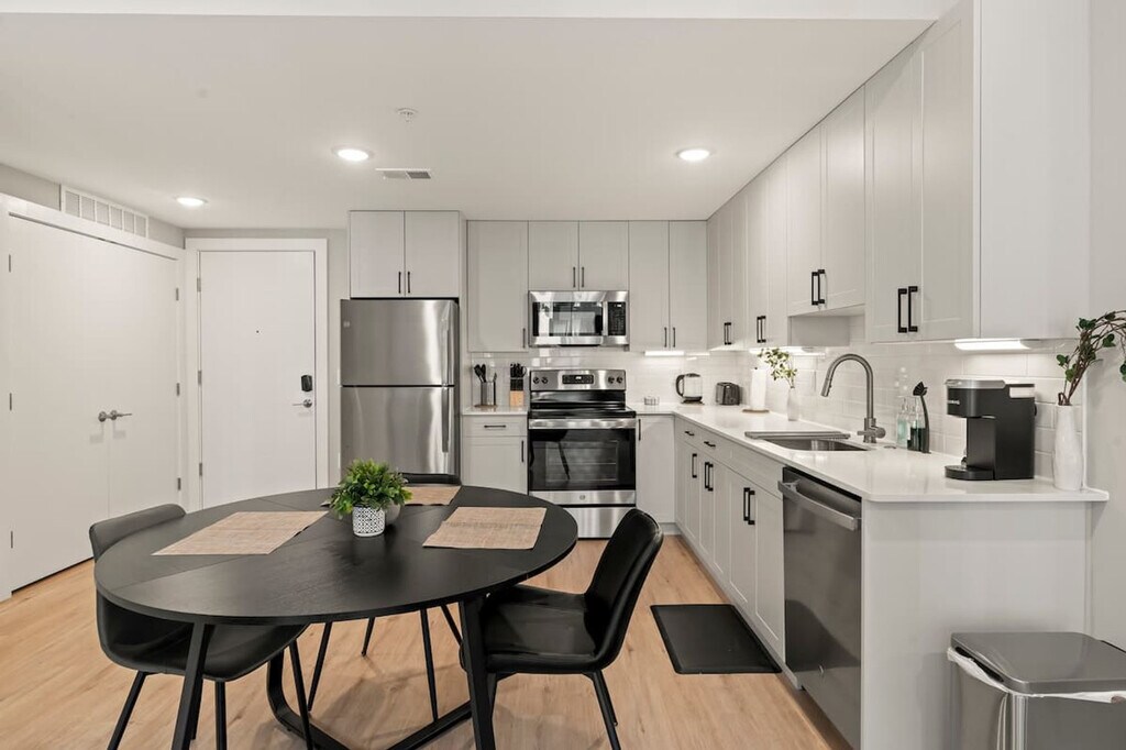 Experience refined comfort in this stylish 1-bedroom 1-bathroom apartment in the heart of Philadelphia. Just steps from iconic landmarks like the Liberty Bell, Independence Hall, and Reading Terminal Market, this modern retreat blends upscale design with thoughtful touches. Enjoy a fully equipped kitchen, plush queen bed, high-speed Wi-Fi, and elegant living space. Perfect for business or leisure travelers seeking sophistication, convenience, and an unforgettable stay. Welcome to your stylish Philadelphia retreat! This modern 1-bedroom, 1-bathroom apartment comfortably sleeps four, featuring a queen bed in the bedroom and a twin pull-out sofa in the living room. Relax in the bright living area and enjoy your favorite shows on the 55” flat-screen TV, or cozy up with a book after exploring the city. The fully equipped kitchen includes a coffee maker, toaster, and all necessary utensils, so you can enjoy homemade meals or morning coffee at your leisure. For those who need to stay productive, a dedicated workspace with a desk and chair provides the perfect spot to work remotely or plan your Philly adventures. The apartment also features a washer and dryer, making it convenient for short getaways or longer stays. Pets are welcome with prior approval based on size and type. A cleaning fee per pet applies as follows: 1–4 Nights: $25 per night, 5–29 Nights: $200, and 30+ Nights: $300. Located near iconic Philadelphia attractions such as the Liberty Bell, Independence Hall, Reading Terminal Market, and vibrant Old City restaurants, this apartment offers the ideal balance of urban convenience and homey comfort. Whether you’re visiting for business, sightseeing, or a relaxing getaway, this modern retreat ensures a memorable stay with everything you need at your fingertips. This is a non-smoking home. A $500 fee will apply if smoking is detected indoors. Kindly remove your shoes upon entering the house and wash any dishes you use before checking out. Check-in instructions may be shared only after successful verification. Includes a dedicated workspace with a desk and chair, perfect for remote work or planning your Philly adventures. [SI]