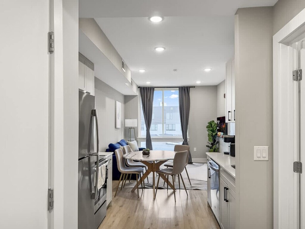 Discover your perfect home away from home in the heart of Philadelphia’s vibrant and historic district. Feel at home in this stylish and contemporary 1-bedroom apartment, designed to offer you the ideal mix of comfort and convenience for an unforgettable stay. Designed for a relaxing and effortless stay, this charming apartment features a modern kitchen equipped with stainless steel appliances including a refrigerator, oven, stove, microwave, and dishwasher. The contemporary bathroom offers a spa-like experience with its sleek design and high-quality finishes. The living room offers a chic and cozy sofa bed. Pets are allowed depending on size, please inquire beforehand. The pet cleaning fee is $25 per night for stays of 1-4 nights, $200 for stays of 5-29 nights, and $300 for stays of 30 or more nights. Discover the best of Philadelphia from this stylish urban retreat. Whether you're here for business or leisure, this apartment is sure to make your stay memorable and enjoyable. Surveillance cameras are in the hallways for security. A Minut device is in the unit for noise level monitoring. No shoes are allowed in the apartment. Please do your dishes before leaving. If there is evidence of smoking indoors, a $500 fine will be imposed. Please ensure the shower curtain is kept inside the shower basin while showering to prevent water from spilling onto the floor. Includes a convenient desk and chair for comfortable work sessions. [SI]
