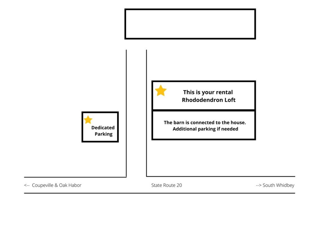 Welcome to Rhododendron Loft, a secluded two-bedroom, two-bathroom loft nestled in approximately five acres of forest within Ebey's Landing National Historical Reserve. This freshly decorated home boasts tons of natural light, high ceilings, and a cozy atmosphere surrounded by trees. With a central location, it's just a five-minute drive to the historic waterfront shops and restaurants and 15 minutes to city conveniences. This charming two-story house spans around 1500 square feet and features a living room with a queen pull-out couch, a dining area, a fully stocked kitchen, a bedroom with a queen bed, and a bathroom with a tub on the first floor. The loft includes another bedroom with a queen bed, a bath with a shower, and a desk and reading nook. The kitchen is equipped with appliances, cookware, silverware, basic condiments, and K-cup coffee and tea. Enjoy high-quality bedding and linens, an onsite washer and dryer, and access to popular streaming TV services. Firewood is provided for the wood-burning stove, perfect for cozying up on chilly nights. The regular nightly rate covers four guests, with additional guest fees of $25 per person per night, up to a maximum of six guests. Well-trained pets are welcome with a fee of $50 per pet per night. Dynamic pricing is utilized, so booking rates may vary daily. Whidbey Island offers a tranquil retreat with lush forests, quaint towns, and stunning beaches, ideal for nature lovers. Coupeville, the second oldest town in Washington, is just three minutes east and features historic boutique shops along the waterfront. The property is conveniently located near Oak Harbour, Deception Pass State Park, Ebey's Landing, and ferry services to Port Townsend and Seattle. Exploring the island by car is recommended. The property is close to the Outlying Landing Field, so you may hear jets flying by. Cell service is spotty, but enabling Wi-Fi calling and texting will help. This property features two separate houses, each with its own private entrance and no shared amenities. Strictly no parties or events are allowed, with quiet hours between 10 pm and 8 am. Smoking or vaping of any kind is prohibited, and a $500 fine applies per violation. Pets should not be left unattended and must be kept off furniture and linens. The upstairs loft area includes a work-from-home space with a desk, making it ideal for remote work needs. While Wi-Fi is the fastest available on the island, it is suitable for most entertainment and light working needs. For specific high-speed requirements, consider a hotspot or similar alternatives. [SI]