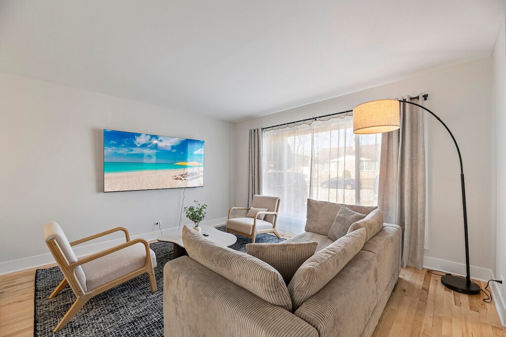 The advertised rate of $12,824/month is the lowest available price, based on a 30 day(s) stay with a move-in date of May 26, 2026. Rates vary depending on the duration of stay, season, and other parameters. For exact pricing and additional pricing components, please visit our website and enter your desired move-in and move-out dates. The rate is applicable when billed upfront; it can be higher if billed in multiple payments. Bring the whole family to this freshly renovated townhome in Des Plaines! Feel at home in this 4-bedroom, 2.5-bathroom townhome featuring hardwood flooring throughout. This home offers expansive living space on the main level, a brand new modern kitchen with quartz countertops and stainless appliances, and a large dining room with table space for 8 people. Upstairs features 4 bedrooms and 2 full bathrooms with tasteful updates. The lower level expands the home dramatically with a large recreation space with a 75-inch TV and a game table for billiards, ping pong, or air hockey. Enjoy the fenced backyard with a dining table, perfect for summer nights! This home provides a great central location for all that Chicago has to offer. Enjoy easy access to Rosemont and downtown Des Plaines for dining and shopping. There are absolutely no parties or gatherings allowed at this home. If you smoke in the property, you will be charged an additional $500 cleaning fee. If you have more than the allowable occupancy of guests, you will be forced to leave. Guests must be 25 years of age to book this property and will be required to provide the full names and ages of all guests over 18 years old. This home is located in a quiet residential neighborhood, so please be respectful of neighbors. [SI]