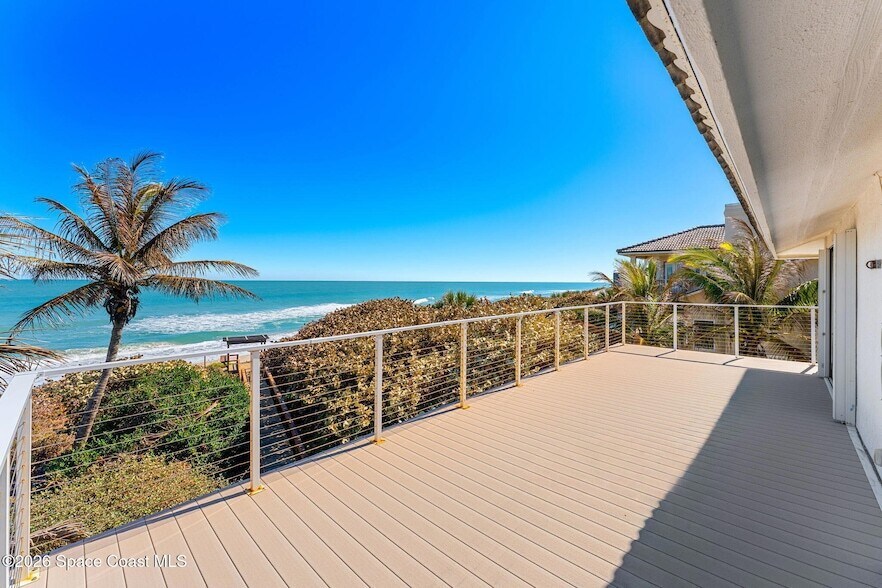 OCEANFRONT- BEACHFRONT- NO HOA- Located in desirable south Melbourne Beach, this UPDATED 3-story single-family home, with balconies on the 2nd and 3rd floors, plus a bonus room and a finished extra storage room, 3 full baths, and 3,110 square feet, features an open floor plan with multiple living areas, LUXURY VINYL PLANK flooring throughout, and an updated kitchen with an island and newer appliances. The primary suite is located on the third floor with a large bathroom, shower, and walk-in closet. An additional bedroom suite is located on the first floor, ideal for guests or flexible living. Exterior features include a large driveway and new shutters throughout. Centrally located near golfing, boating, many other outdoor activities, Vero Beach, Cocoa Beach, Viera, the Space Center, Melbourne and Orlando International Airports, Disney World, and other world-class attractions.