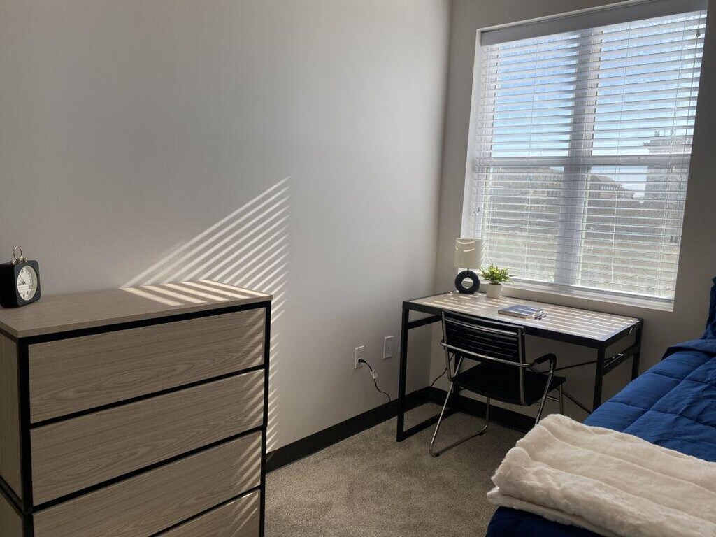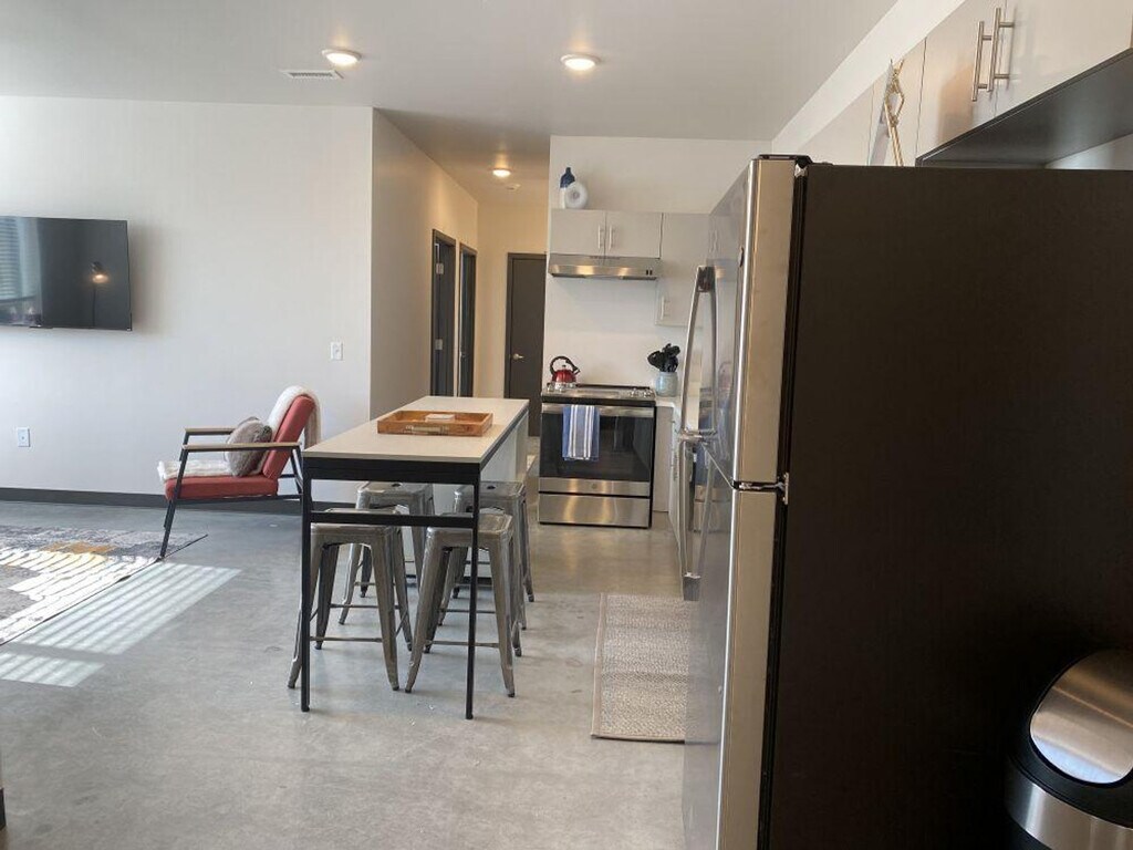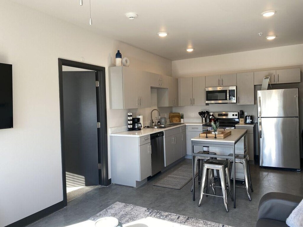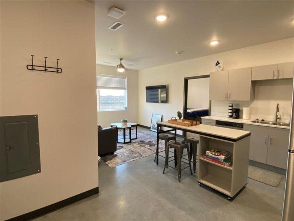 Welcome to this stunning 2-bedroom condo! The living area is equipped with a smart TV, providing entertainment at your fingertips. Whether it's movie nights with friends, catching up on your favorite shows, or simply unwinding after a long day, this condo offers the perfect setting for relaxation and entertainment. The equipped kitchen invites you to channel your inner chef and whip up delicious meals with ease. With modern appliances and ample counter space, cooking has never been more enjoyable. Stay active and energized during your stay with access to the on-site fitness center. Whether you prefer to start your day with a cardio workout or unwind with some strength training, you'll find everything you need to stay in shape and feel your best. No parking at the property. There is a paid public parking garage next to the property. You’ll never get bored at Atmosphere Lincoln! When you aren’t out enjoying our vibrant neighborhood, come home to our beautiful outdoor courtyard to hang with friends or relax in the hot tub. And when it is cold outside, enjoy our warm indoor clubhouse with billiards, ping pong, and a coffee bar. Just steps away, the Historic Haymarket District offers a vibrant mix of restaurants, boutiques, galleries, and entertainment. The Pinnacle Bank Arena is a premier entertainment venue nearby, and the University of Nebraska-Lincoln campus is within easy reach. Memorial Stadium is also within walking distance, and the Sunken Gardens provide a peaceful escape within the city. Traveler must be at least 21 years of age to make a reservation. A State Identification Card or Driver's License copy will be requested upon booking. No smoking in the unit or on the balcony. Any violation of the smoking policy will incur a $200 fine plus the cleaning costs necessary to remove smoke odors from the unit and linens. No parties or events are allowed. Violators will be charged a $200 to $500 fine. Pets are not allowed. We are not responsible for any accidents, injuries, or stolen or damaged items that occur while on the premises, its facilities, or parking lots. Includes a laptop-friendly space. [SI]