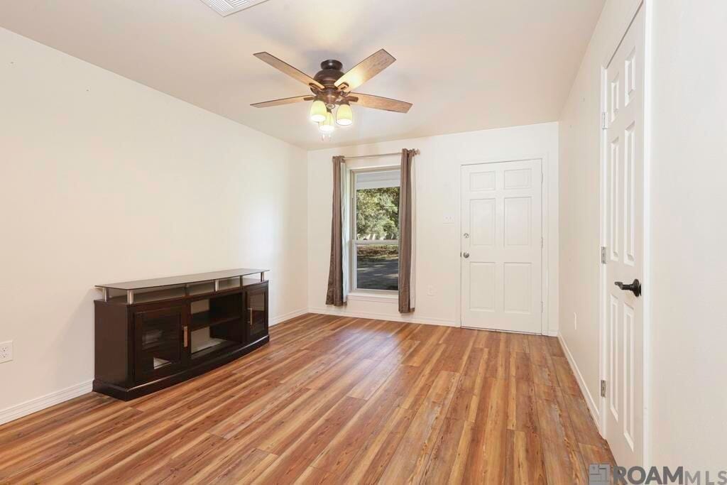 Precious 3-bed, 2-bath home in the heart of Denham Springs! This beautifully remodeled home sits on a spacious lot with mature trees and offers no carpet throughout. The interior features a fresh, neutral color palette, stylish updates, and modern finishes. The kitchen boasts quartz countertops, white cabinetry, and a gas stove, opening to the dining area and a large bonus room overlooking the backyard—perfect for entertaining or relaxing. A formal living room sits at the front of the home, while two guest bedrooms share a conveniently located hall bath. The primary suite offers a custom-tiled shower and updated fixtures. Additional highlights include updated ceiling fans, a newer roof, and renovations from top to bottom. This move-in ready home is truly a must-see!