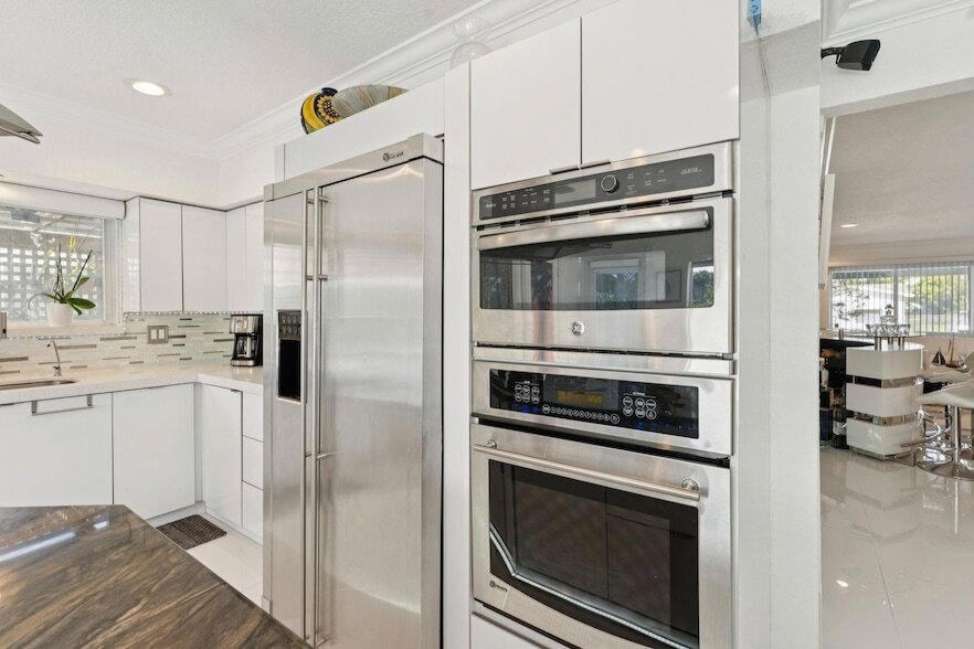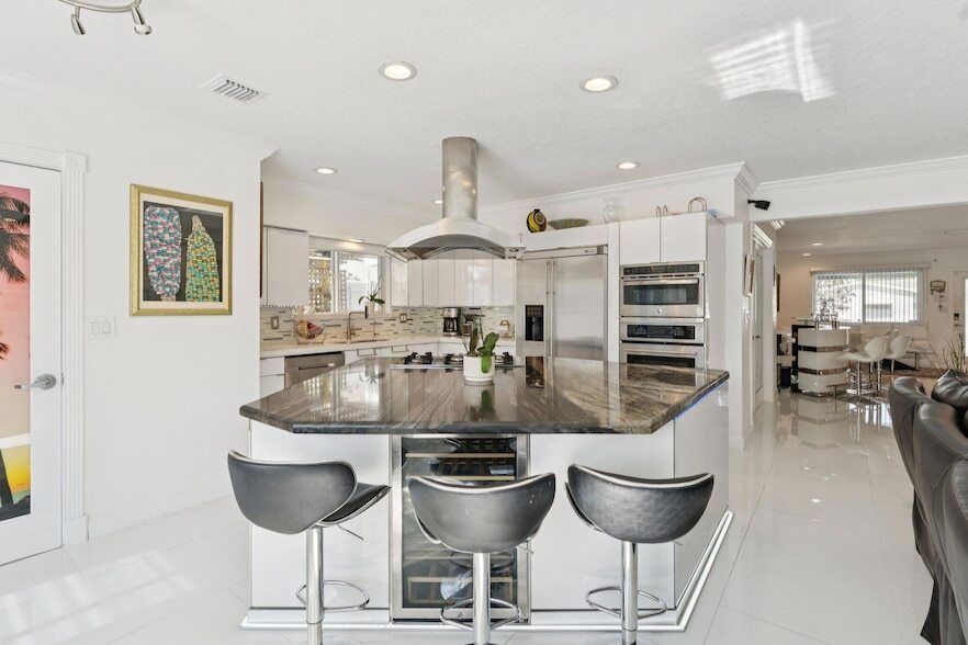 Fully Furnished Waterfront Luxury Retreat featuring 3 bedrooms, 3 full baths, with high-end finishes throughout. This single family home includes a gourmet kitchen with additional Sub-Zero refrigerator, EuroCave wine cooler, gas range and LG washer/dryer. Outdoor you will find an oasis complete with an in-ground saltwater pool/spa, summer kitchen with grills, pizza oven, green egg, ice maker, freezer, and sauna. Solar panels, Carico water filtration system, and impact windows provide comfort and efficiency. One fixed bridge to open water. Excellent location near FLL Airport, beaches, shops, and restaurants. Annual rental preferred