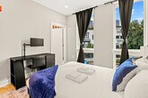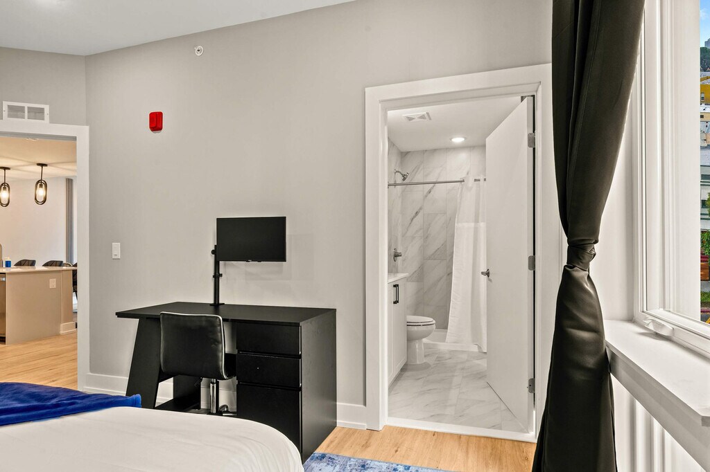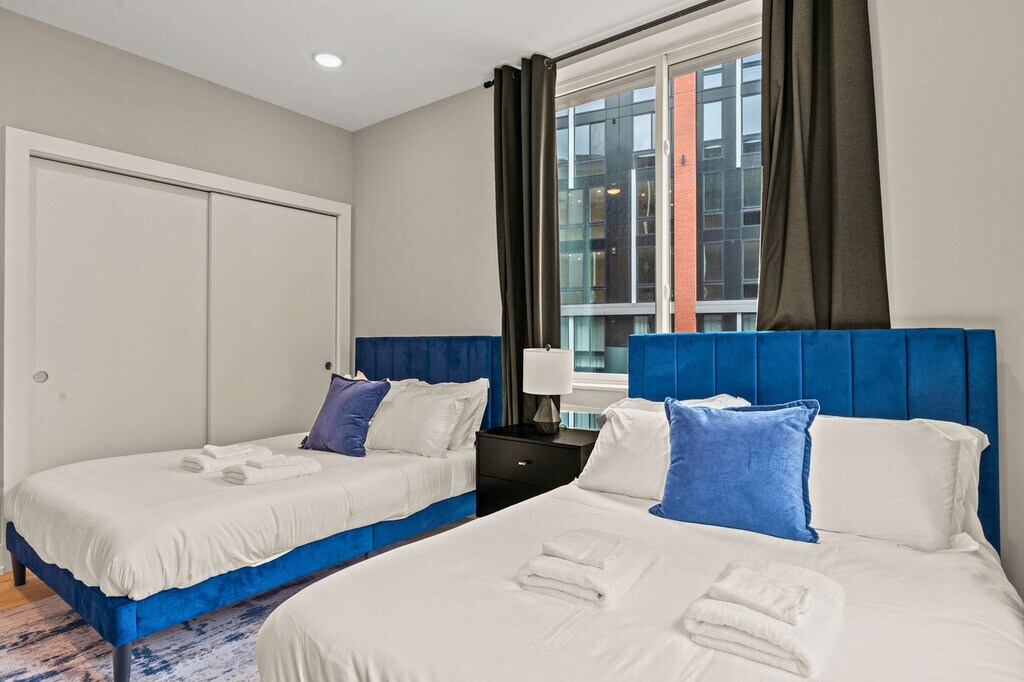 Welcome to your home away from home in the vibrant heart of Philadelphia! This cozy urban retreat offers the perfect blend of comfort, convenience, and modern amenities. Ideal for both business travelers and vacationers, this charming 2-bedroom apartment promises a memorable stay. This inviting apartment is thoughtfully designed to cater to all your needs for a carefree and enjoyable stay. Relax in the serene ambiance of the first bedroom, furnished with a plush queen bed, and enjoy a restful night’s sleep with high-quality linens and ample closet space. The second bedroom features two full-sized beds, perfect for kids or additional guests. The living room includes a stylish and comfortable sofa bed, seamlessly integrated into the space, and the kitchen is outfitted with state-of-the-art stainless steel appliances, making cooking and cleanup a breeze. The bathrooms feature a contemporary design with clean lines and high-quality finishes. Pets are allowed depending on size, with an additional cleaning fee of $25 per night for stays of 1-4 nights, $200 for 5-29 nights, and $300 for 30+ nights. Please inform us beforehand if you plan to bring a pet to avoid cancellation. There are surveillance cameras in the hallways for security and a Minut device in the unit for noise level monitoring. No shoes are allowed in the house, and guests are requested to do their dishes before leaving. Smoking is not allowed indoors, and if there is evidence of smoking, a $500 fine will be imposed. Please ensure the shower curtain is kept inside the shower basin while showering to prevent water from spilling onto the floor. Equipped with a comfortable desk and chair to ensure you can work for extended periods without discomfort. [SI]