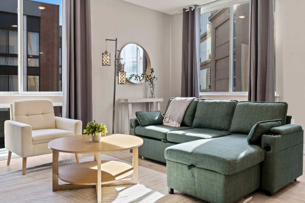 Feel at home in this cozy 1-bedroom apartment nestled in the vibrant heart of Philadelphia, offering a perfect blend of comfort and convenience. This welcoming apartment is thoughtfully designed to provide everything you need for a comfortable and stress-free stay. The fully equipped kitchen boasts sleek stainless steel appliances including a refrigerator, oven, stove, microwave, and dishwasher. The stylish living area includes a modern sofa bed and a 55” Smart TV. The apartment features two bathrooms—one full bathroom with a shower and a second half bathroom equipped with a toilet and sink. Pets are allowed depending on size, with a cleaning fee of $25 per night for stays of 1 to 4 nights, $200 for stays of 5 to 29 nights, and $300 for stays of 30 or more nights. Experience the best of Philadelphia from this modern urban retreat. Ideal for both business travelers and vacationers. No shoes are allowed in the house. Please do your dishes before leaving. If there is evidence of smoking indoors, a $500 fine will be imposed. Please ensure the shower curtain is kept inside the shower basin while showering. Surveillance cameras are in the hallways for security. A Minut device is in the unit for noise level. Includes a dedicated workspace with a comfortable desk and chair. [SI]
