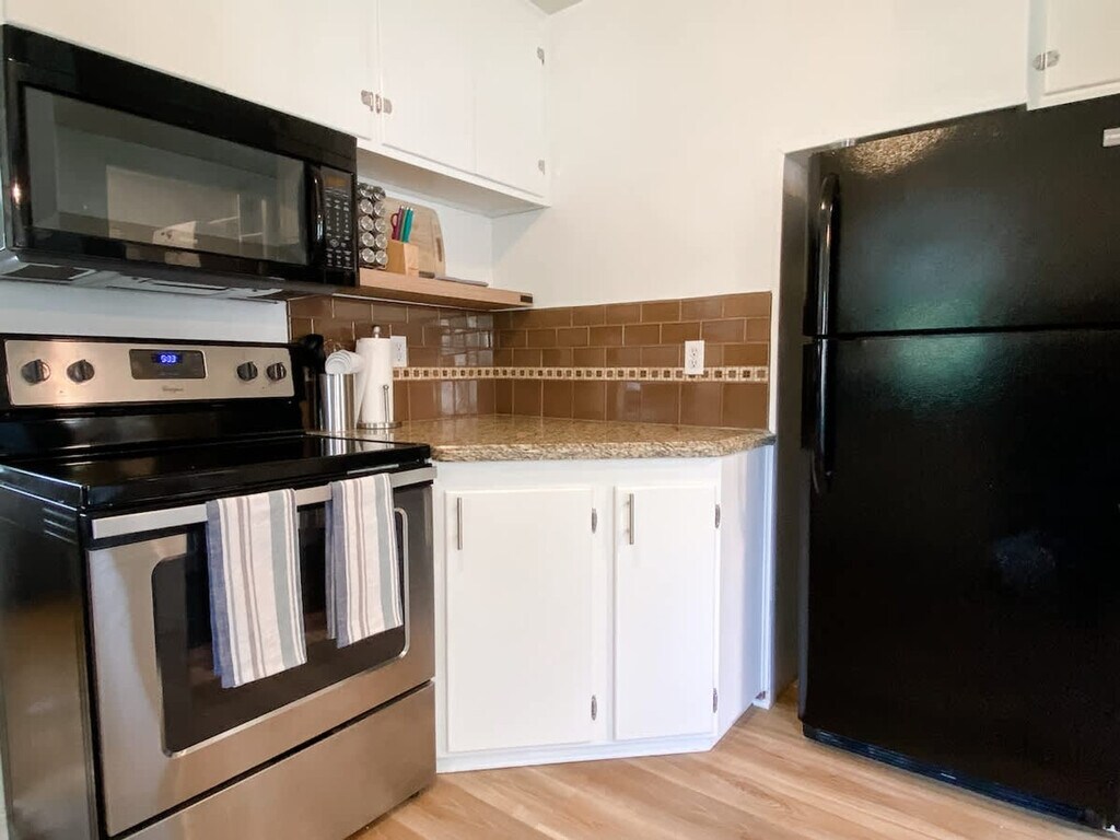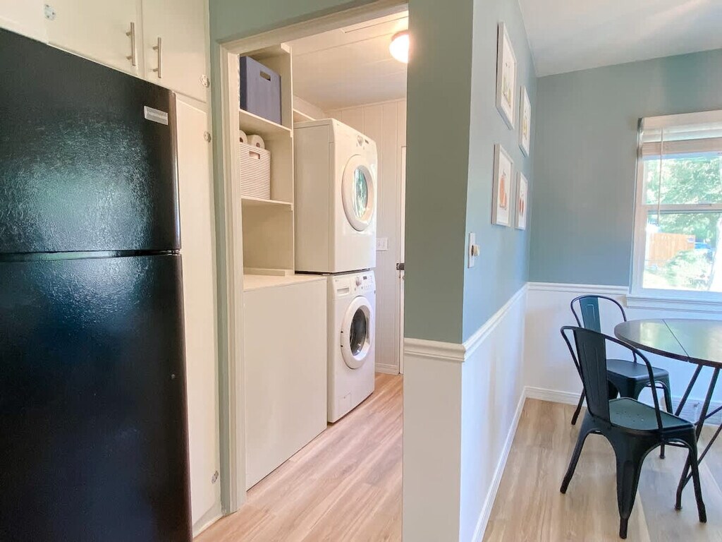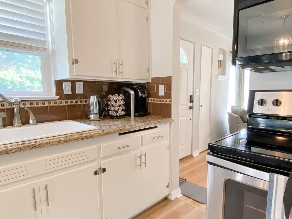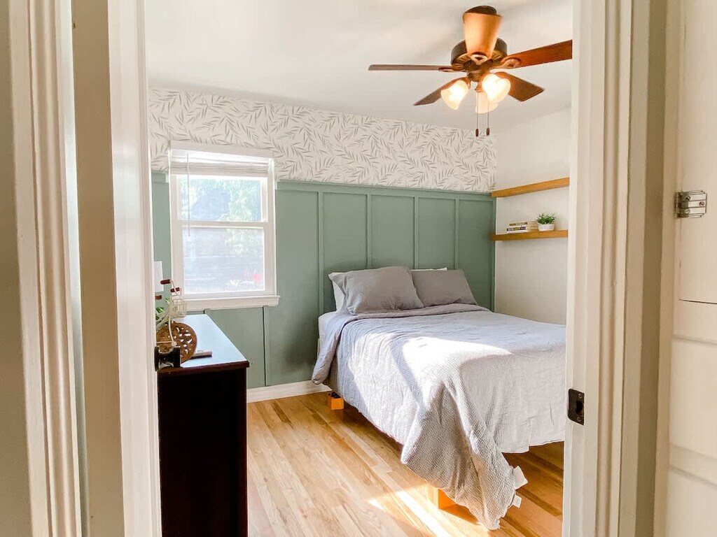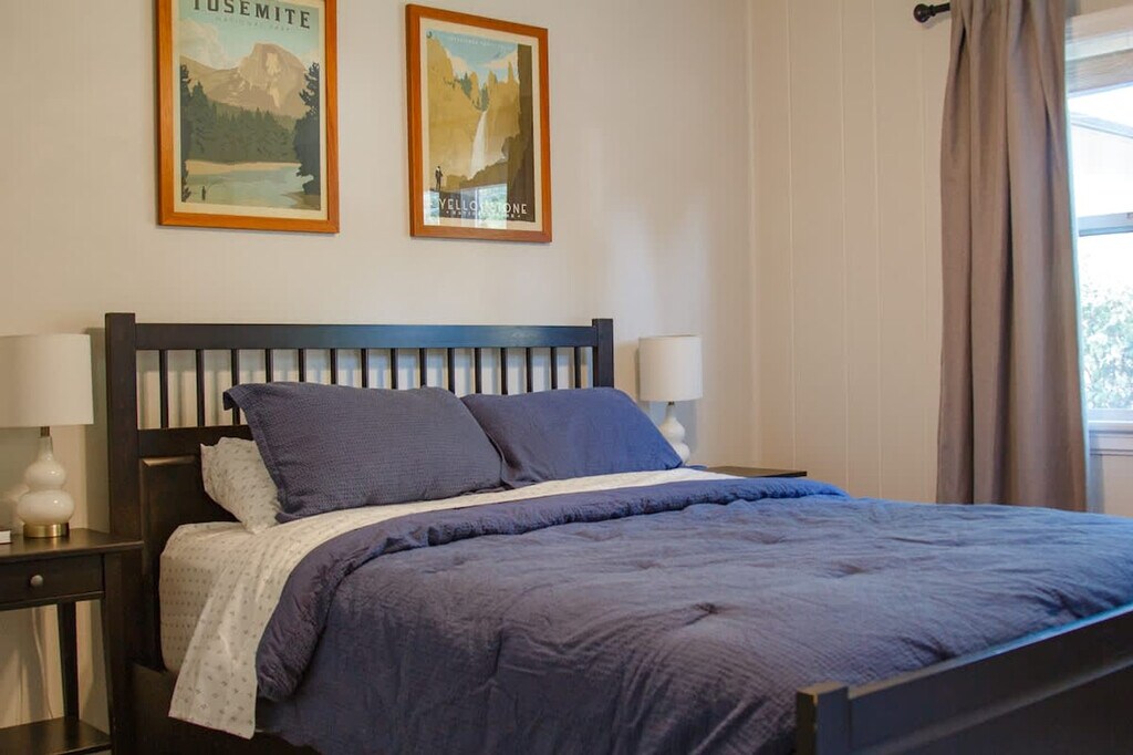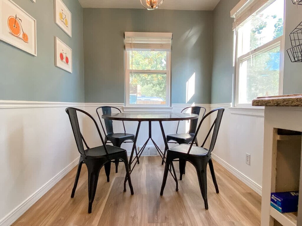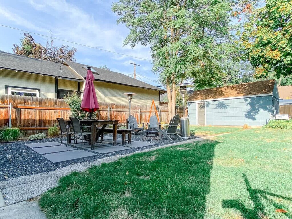 Feel at home in this quaint cottage, built in 1940 and located four blocks away from Hyde Park with restaurants and shops, and one mile from Downtown Boise. Steps away from Camel's Back Park, this home offers access to miles of trails. Perfect for a couple or a family, this cottage has two bedrooms, one bathroom, and access to a good-sized yard on a corner lot. Guests will have access to the entire home and yard during their stay. The kitchen and dining nook are cozy for breakfast, lunch, or dinner and includes a full fridge, stove, and dishwasher. Dining and serving ware, baking pans, pots and pans, and mixing bowls are included. Guests also have access to the laundry and detergent. One well-behaved dog is welcome with a $70 pet fee to cover cleaning expenses. Located in the historic North End neighborhood in Boise, Idaho, this home is surrounded by friendly neighbors, beautiful homes, and a charming block of delicious eateries and shops within walking distance. Camel's Back Park, with a playground, tennis courts, open green space, and a trailhead entrance with more than 200 miles of hiking and biking trails, is just steps away. Free parking is available on the street in front of the house. Walking, biking, ride sharing, or driving are recommended ways to get around the neighborhood. Quiet hours are from 9 p.m. to 8 a.m. Please be respectful of the neighbors. No animals other than a dog are allowed, as the family has allergies to other animals; a fee may incur if unapproved animals are on the premises. Smoking is not permitted on the premises or inside the home; a $500 mitigation fee will apply if smoking is discovered on the premises. Events including but not limited to birthdays, showers, or receptions are not permitted. Check-out is at 11 a.m. The living room includes a 44” smart HDTV where guests may log into apps with their personal credentials or cast from their phone. [SI]
