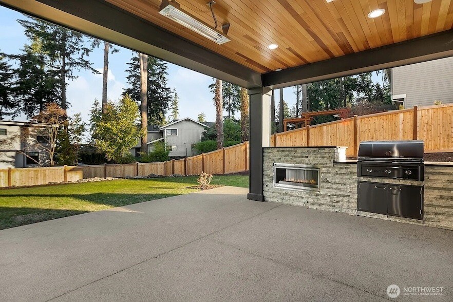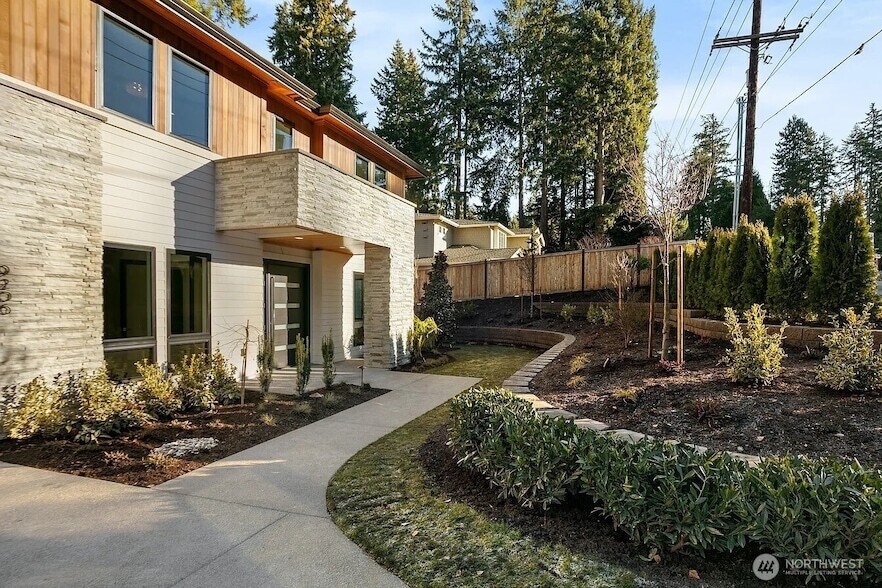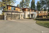 Furnished and ideally located in the heart of Clyde Hill, this 2018-built modern residence by JayMarc Homes offers exceptional craftsmanship and comfort. Thoughtfully designed with 5 spacious bedrooms, each featuring an en suite bathroom, plus 2 additional powder rooms. One bedroom is conveniently located on the main floor, with 4 bedrooms and a large media room upstairs. The open-concept great room boasts soaring 20-foot ceilings and abundant natural light, seamlessly connecting to a modern Miele kitchen with premium appliances, double dishwashers, and elegant finishes. Laundry on both floors, a 3-car garage with a built-in Tesla charger, and a beautifully landscaped backyard featuring peak-a-boo views of Lake Washington!