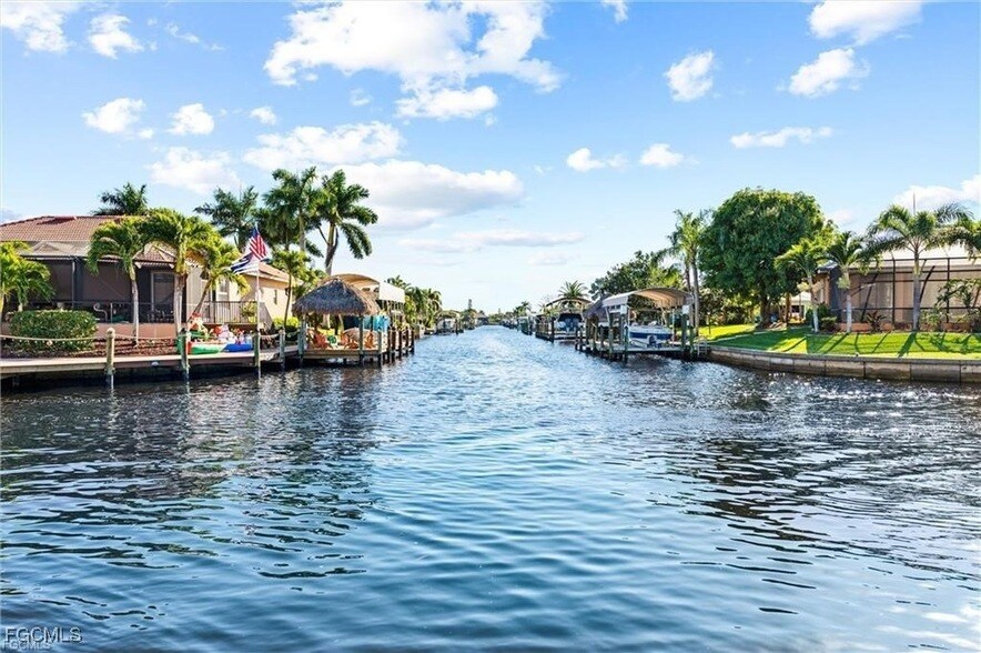 Welcome to your dream waterfront retreat in the highly sought-after Southwest Cape Coral! This stunning 2-bedroom, 2-bath condo offers southern exposure with direct Gulf access with breathtaking views of intersecting canals. Step inside to over 1,000 sq ft of stylish-upgraded-living space. Entire new kitchen open to the living area, vaulted ceilings, pull down attic with steps leading to extrra storage area, and so much more!Enjoy your morning coffee on the screened lanai accessible from both the living room and master suite as you enjoy the serene water views! For extra comfort and peace of mind, there is an electric hurricane shutter on the lanai and all the new windows are impact glass! Boat dock is first come first serve with just a short ride to open waters. Covered parking included. This condo is the perfect blend of comfort, style, and location. 55+ community. This unit is currently unfurnished