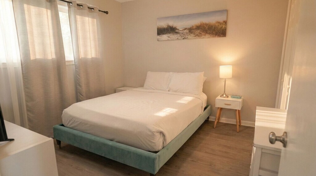 The advertised rate of $3,978/month is the lowest available price, based on a 30 day(s) stay with a move-in date of March 30, 2026. Rates vary depending on the duration of stay, season, and other parameters. For exact pricing and additional pricing components, please visit our website and enter your desired move-in and move-out dates. The rate is applicable when billed upfront; it can be higher if billed in multiple payments. Feel at home in this Gulf Shores condo, located in the heart of the city. This meticulously maintained condo offers a personalized experience, ensuring a higher level of care. This condo blends coastal charm with modern comforts, featuring a signature shiplap accent wall and an open-concept layout designed for relaxation. The living area includes plush grey sofas and a flat-screen TV. The fully equipped kitchen has modern appliances and essentials for beachside brunches. There is also in-unit laundry and air conditioning throughout. Covered parking is available. This condo is centrally located in the vibrant heart of Gulf Shores, just one block from public beach access and a short walk to Gulf Place, the city's main beach hangout with festivals, shops, and boardwalks. You're also close to local favorites like The Beach House, The Hangout, Pink Pony Pub, and fresh seafood markets. With an unbeatable "Walk Score," everything from the shoreline to the grocery store and nightlife is accessible on foot. Quiet hours are observed from 10:00 PM to 8:00 AM. Please keep doors and windows closed while the A/C is running to keep the unit cool and efficient. This is a strictly smoke-free property. Please use the outdoor shower/wash station to rinse off sand before entering the condo. [SI]
